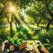 "Jabloňový sad uprostřed lesa staletých cedrů"