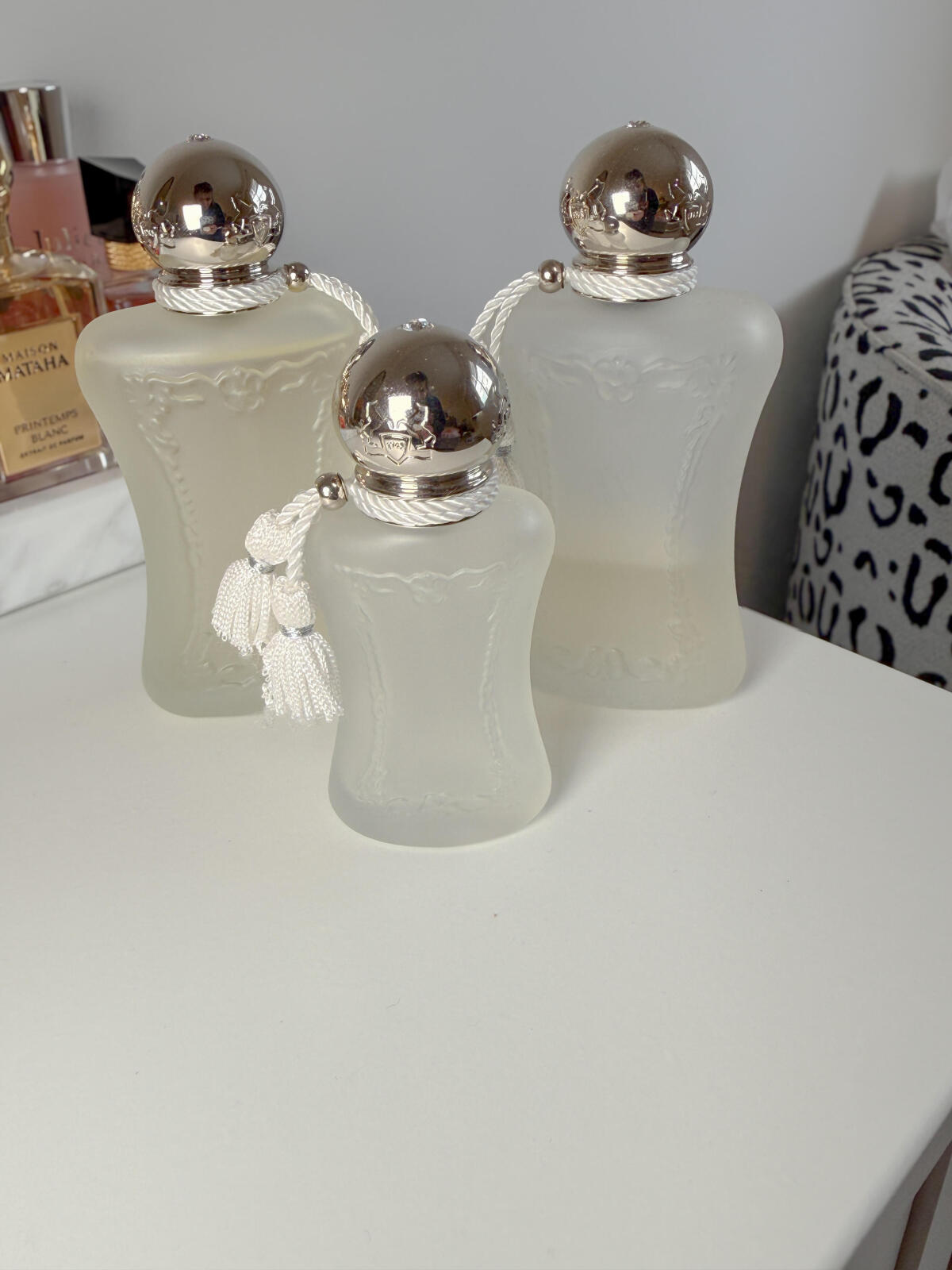 Obešla jsem stůl a zeptala se všech 18 lidí, co měli na sobě na večeři, kterou jsem pořádala. Nepamatuji si všechno, ale tady je několik, které mě zaujaly. Dva lidé měli na sobě vůni Baccarat Rouge 540. Dva lidé měli Donnu Born in Roma. Někdo měl na sobě novou vůni YSL Libre L'Absolu Platine. Někdo měl na sobě Safanad od Parfums De Marly, a když jsem jí přiložila nos na krk, STÁLE jsem ji necítila. Dala jsem si na sebe 12 ml Sorriso, takže se někteří ppl zmínili o tom, jak jsem byla gurmánská. Jaké vůně se nosily, že jsem je cítila na dálku? 𝗩𝗮𝗹𝗲𝗻𝘁𝗶𝗻𝗼 𝗗𝗼𝗻𝗻𝗮 𝗕𝗼𝗿𝗻 𝗜𝗻 𝗥𝗼𝗺𝗮 𝗜𝗡𝗧𝗘𝗡𝗦𝗘 & 𝗠𝘀. 𝗩𝗮𝗹𝗮𝘆𝗮 𝗳𝗿𝗼𝗺 𝗣𝗮𝗿𝗳𝘂𝗺𝘀 𝗗𝗲 𝗠𝗮𝗿𝗹𝘆. Královna Valaya byla Valaya-ING! Lady Vee dělala dern thang 𝗧𝗛𝗔𝗡𝗚. Bylo pro mě těžké dokončit větu při rozhovoru, jakmile vedle mě stála paní, která ho měla na sobě. Zakopla jsem o pár slov a ona sd: "Joy! Soustřeď se!!!" Valaya dává nový význam slovu DRUNK IN LOVE! Zatím mám jen dekantér, ale nejvyšší prioritou je plná láhev. 🤍