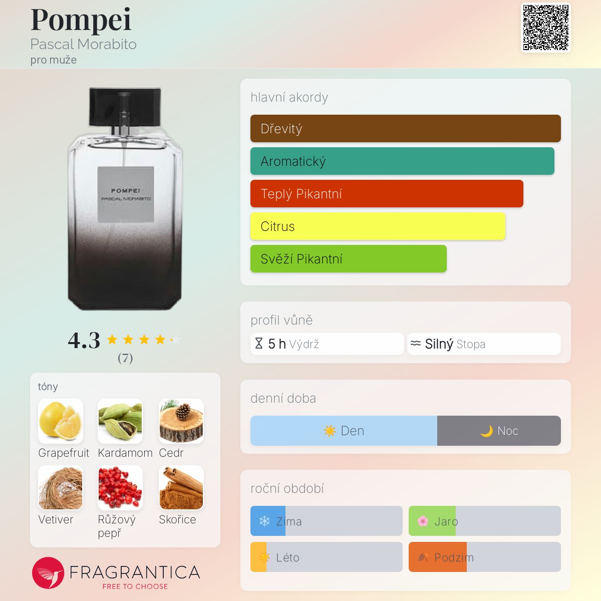 Pompei podle Pascal Morabito je vůně pro muže. "Nosem" za touto vůní je Corinne Cachen. Vrchní tóny jsou Grapefruit, Kardamom a Růžový pepř; střední tóny jsouCedr, Skořice a Pelargónie ; základní tóny jsou Vetiver, Pačuli, Jantar (ambra) a Pižmo.