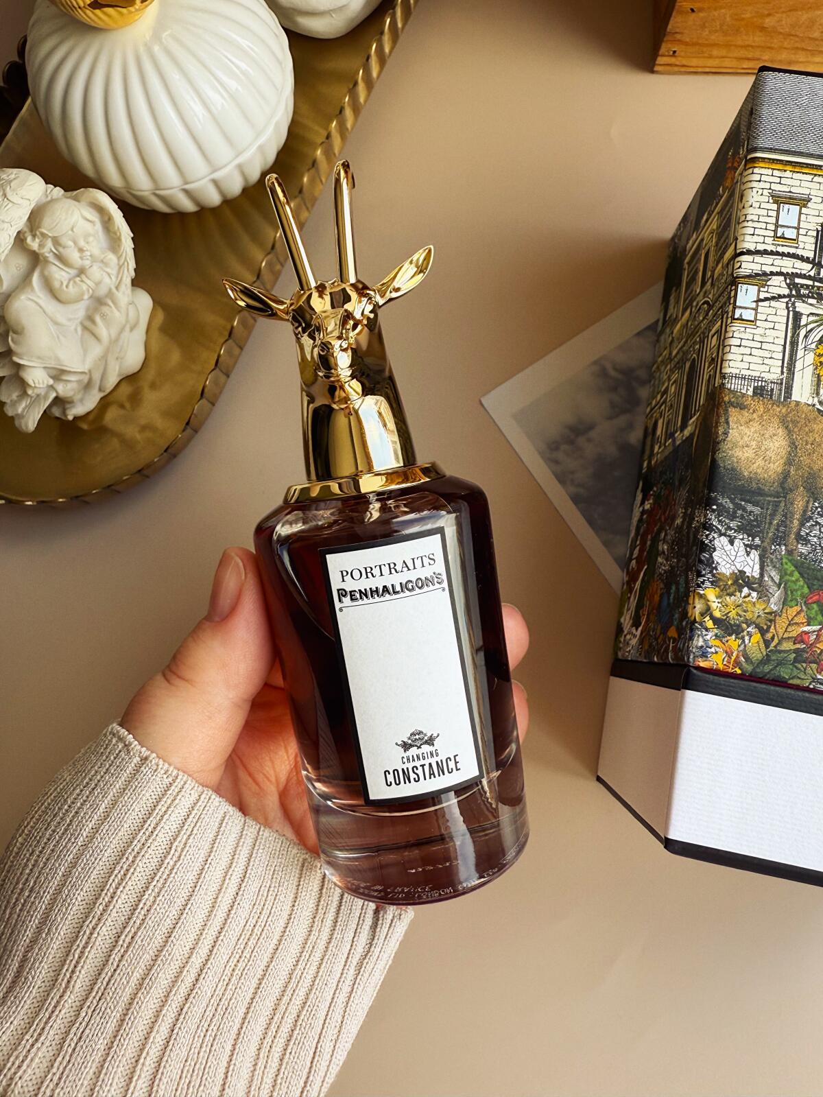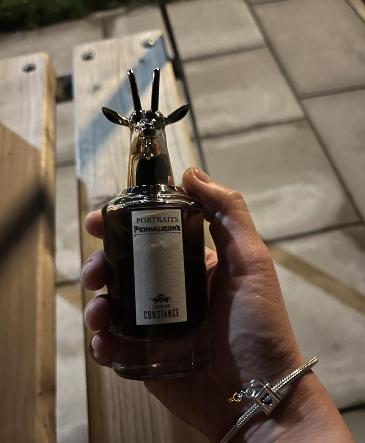 Constance nejprve vnímám jako svěží koření, pak se odhalí sladké karamelové tóny a ukolébá mě tabákový základ, který velmi vzdáleně připomíná Tobacco Vanille od Toma Forda.