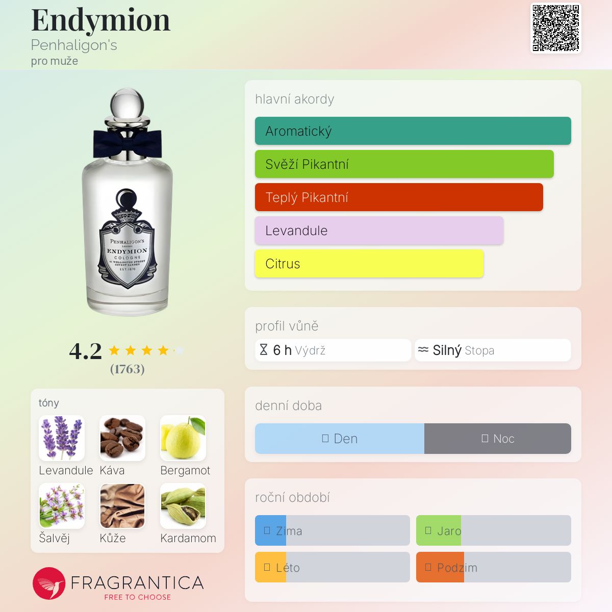Endymion podle Penhaligon's je Orientální Spicy vůně pro muže. Endymion byl/a uveden/a v roce 2003. "Nosem" za touto vůní je Fragrance Resources. Vrchní tóny jsou Levandule, Bergamot, Šalvěj a Mandarinka; střední tóny jsouKáva a Pelargónie ; základní tóny jsou Kůže, Kardamom, Santalové dřevo, Muškátový oříšek, Myrha, Černý pepř, Vetiver, Pižmo, Kadidlo a Olibanum.