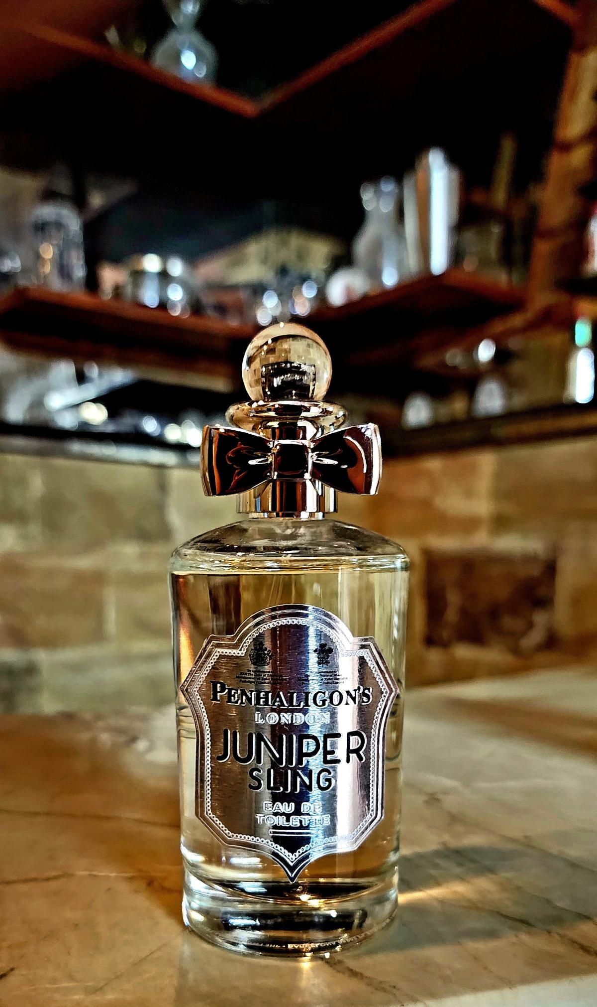 Vůně je z řady těch, kterým říkám "molekulární". Je ideální pro fanoušky první a druhé "molekuly". Na začátku udeří do nosu akordem, ve kterém můžete zachytit jak ISO e Super, tak ambroxan. Je to jakási vůně silně sycené minerální vody s pepřem; ano, lze v ní vycítit tóny kvalitního ginu. Doslova po 10 vteřinách vůně vystřízliví a stane se z ní cukrkandlová pomerančová - nejsou to šťavnaté pomeranče, ale umělé pomeranče, jako v bonbonech. Takže až do svého konce (ten přijde brzy, protože parfém je nestabilní) se Juniper Sling třpytí molekulami kolem umělých pomerančů.