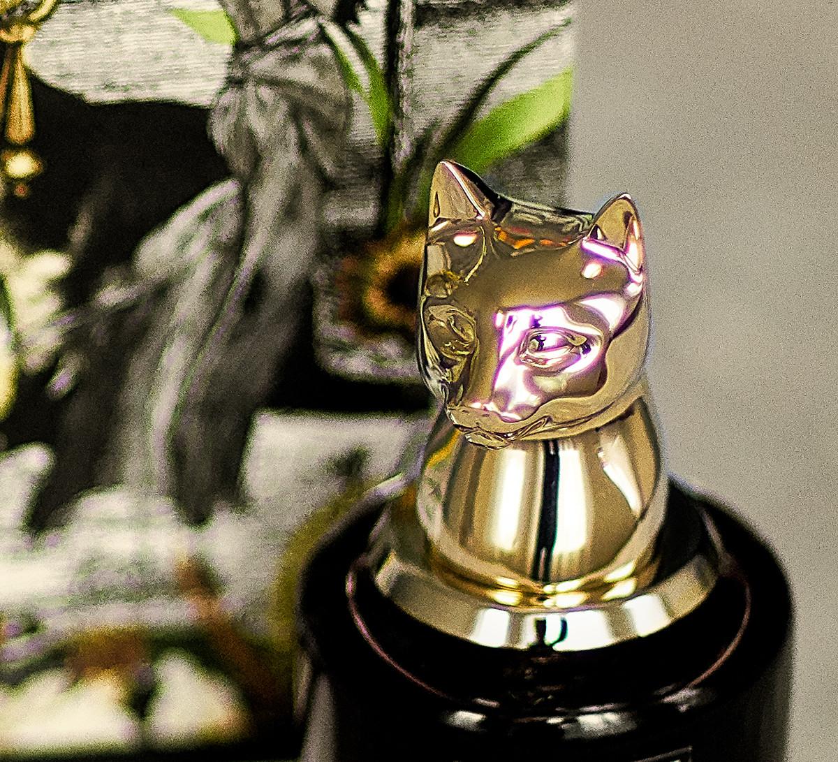 Jeho vysoce kořeněné vrchní tóny se vznešenými tóny černé kávy tajemně kloužou po pokožce, když procházíte temnou a chladnou zahradou lemovanou jasmínem, tato okouzlující čarodějka se proměňuje v krásnou bombajskou kočku v třpytivé černi vydechující tichou a podmanivou vanilku hledající oběti pro svá kouzla...