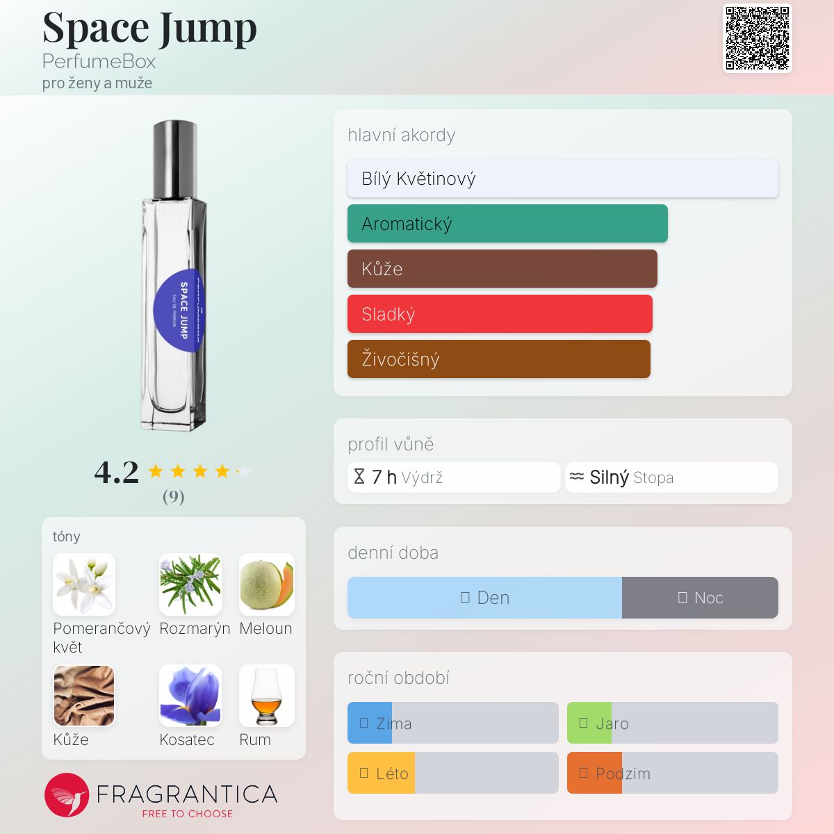 Space Jump podle PerfumeBox je Aromatic Fruity vůně pro ženy a muže. Space Jump byl/a uveden/a v roce 2019. "Nosem" za touto vůní je Julia Kupriyanova.