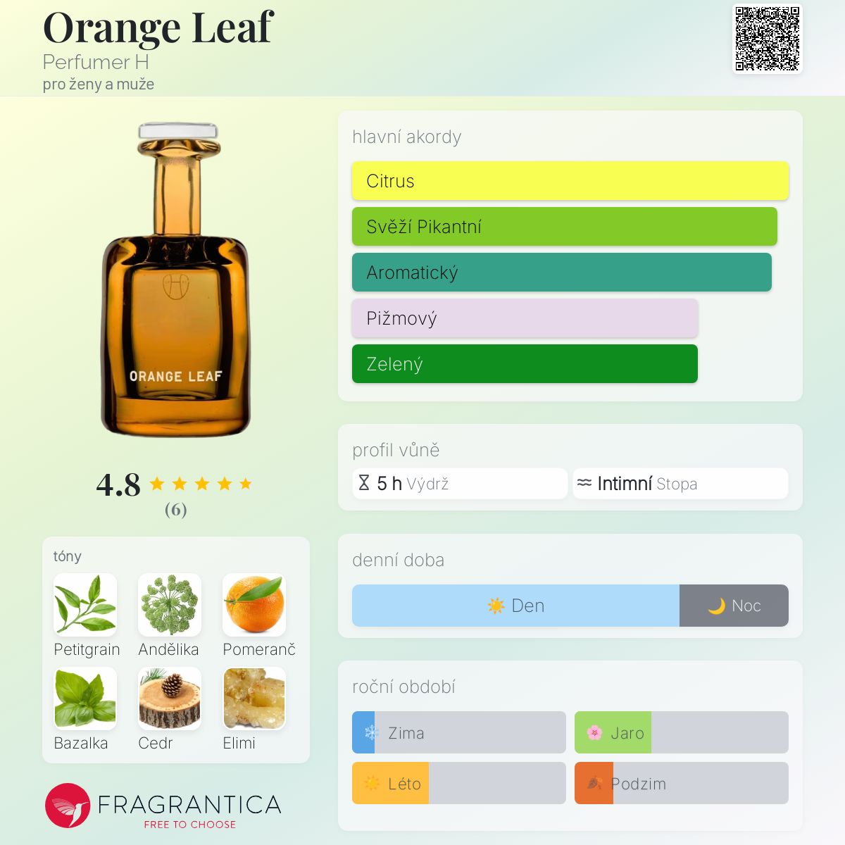 Orange Leaf podle Perfumer H je Citrus Aromatic vůně pro ženy a muže. Orange Leaf byl/a uveden/a v roce 2016. "Nosem" za touto vůní je Lyn Harris.