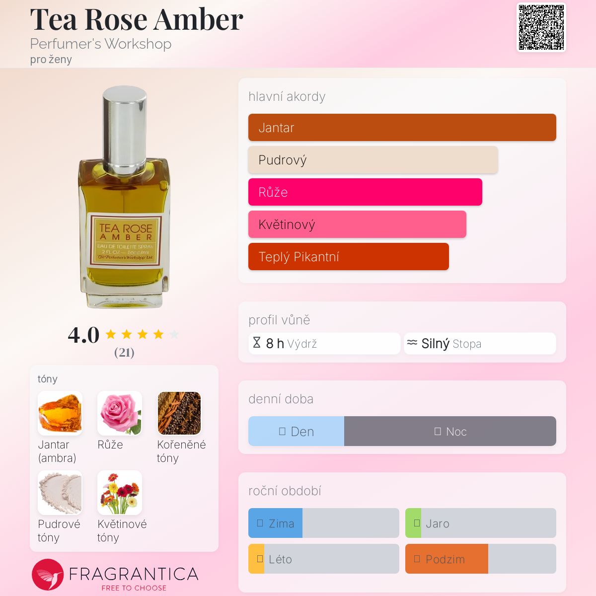 Tea Rose Amber podle Perfumer's Workshop je Orientální Floral vůně pro ženy. Tea Rose Amber byl/a uveden/a v roce 1999.