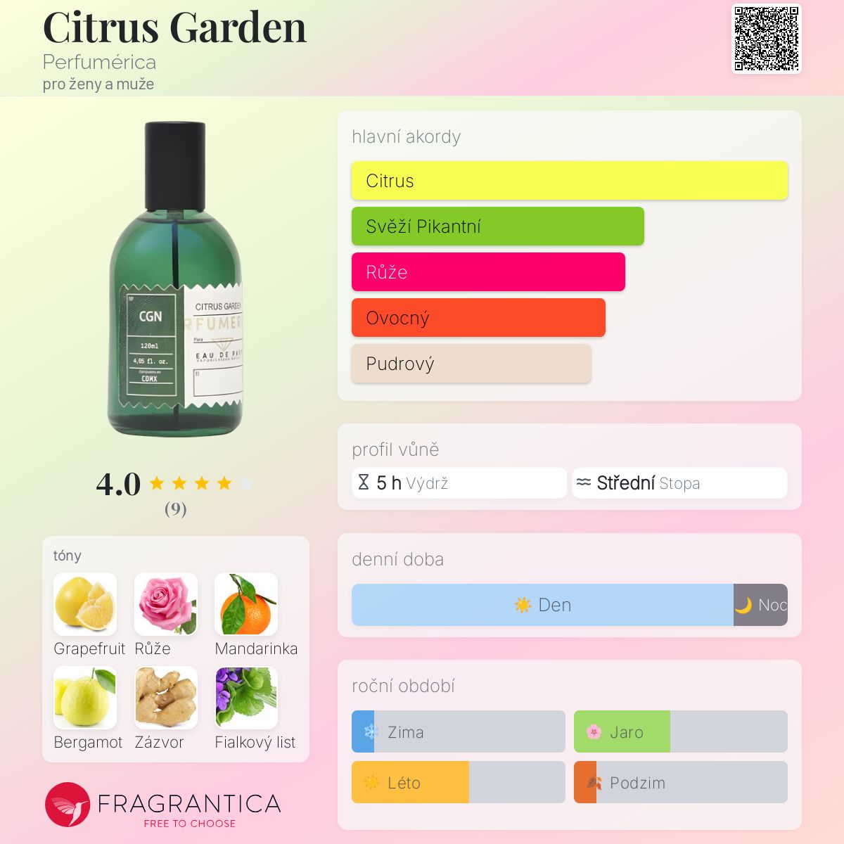 Hodnocení parfému 4.00 z 5 s 9 hlasy