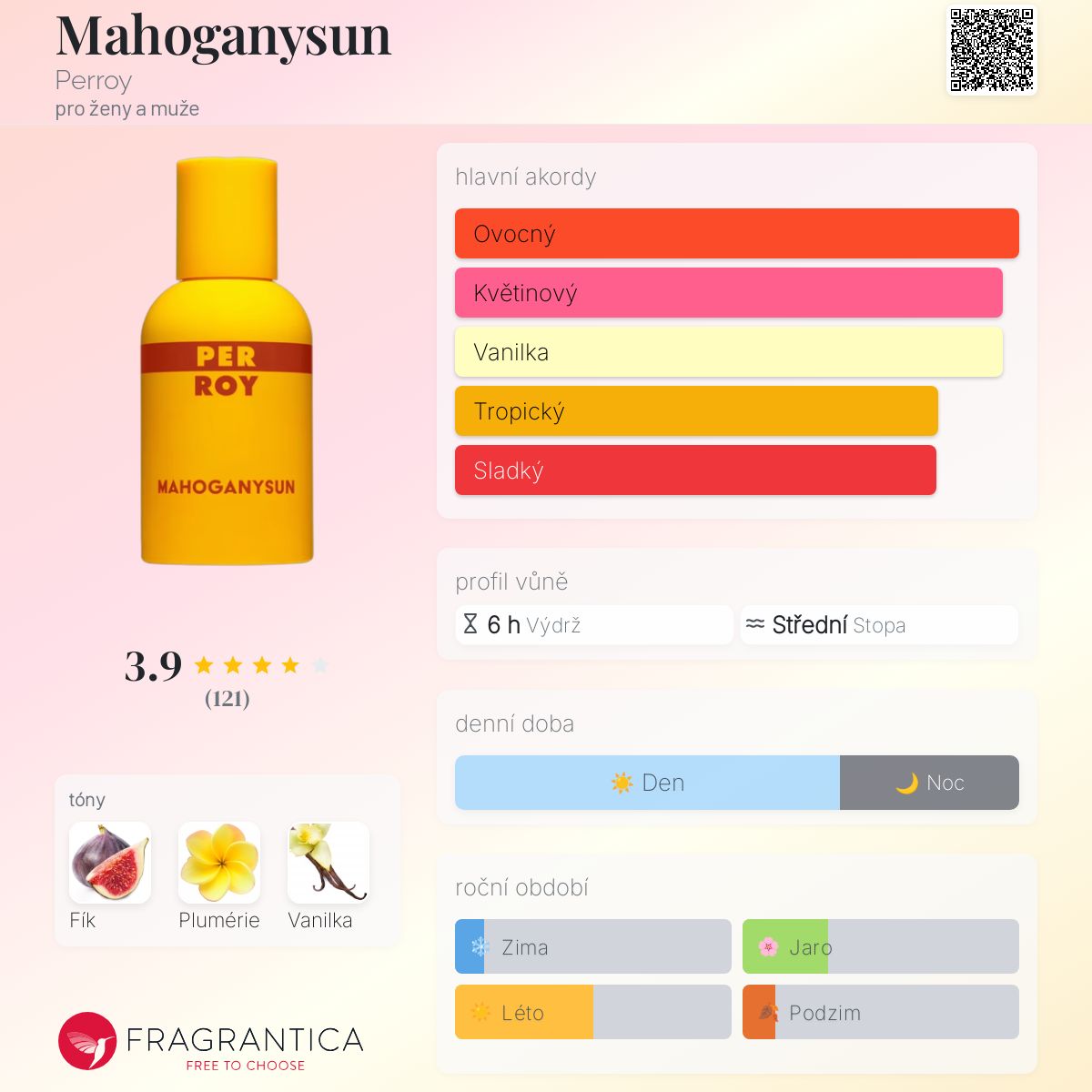 Mahoganysun podle Perroy je Orientální Vanilla vůně pro ženy a muže. Toto je nová vůně. Mahoganysun byl/a uveden/a v roce 2024. "Nosem" za touto vůní je Arnaud Poulain. Vrchní tón je Fík ; střední tón jePlumérie ; základní tón je Vanilka.