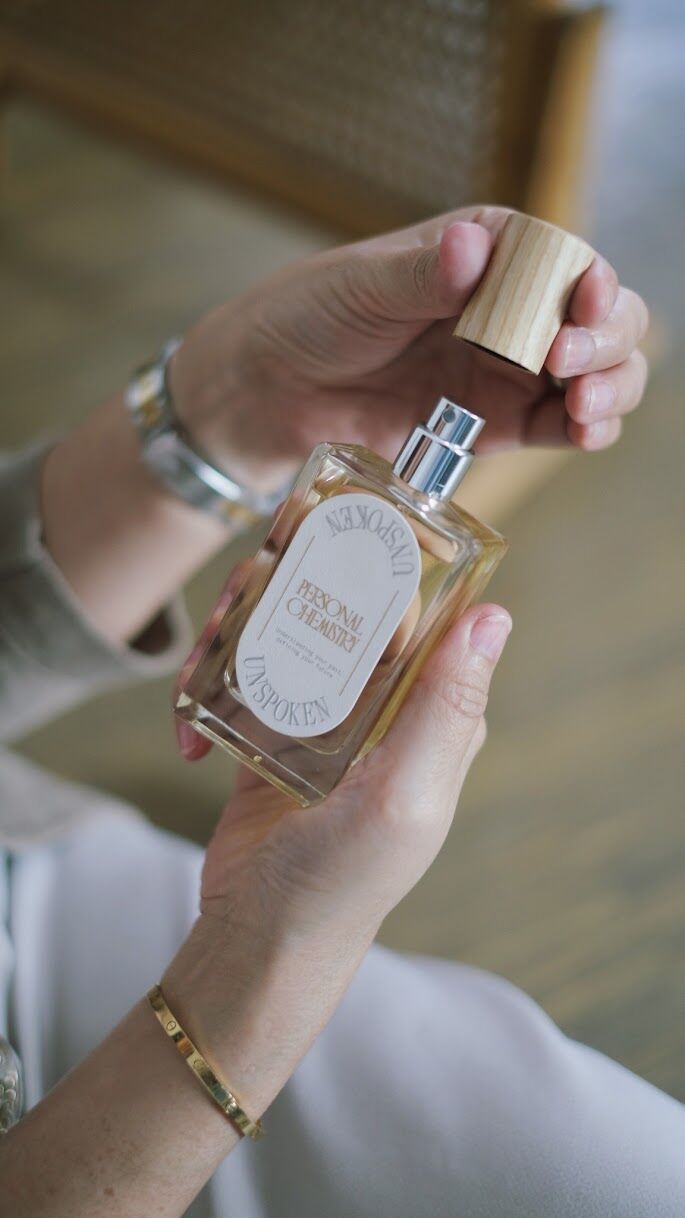 Unspoken podle Personal Chemistry je vůně pro ženy a muže. Unspoken byl/a uveden/a v roce 2023. "Nosem" za touto vůní je Lygia. Vrchní tóny jsou Růžový pepř, Kardamom a Švestka; střední tóny jsouKadidlo, Damašská růže a Elimi ; základní tóny jsou Guajakové dřevo, Cypriolový olej a Pačuli.