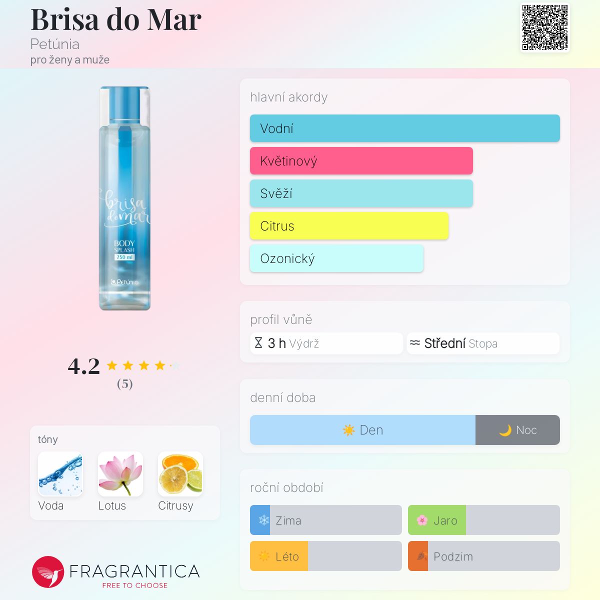 Brisa do Mar podle Petúnia je Floral Aquatic vůně pro ženy a muže. Brisa do Mar byl/a uveden/a v roce 2019. Vrchní tón je Citrusy ; střední tón jeVodnaté tóny ; základní tón je Lotus.