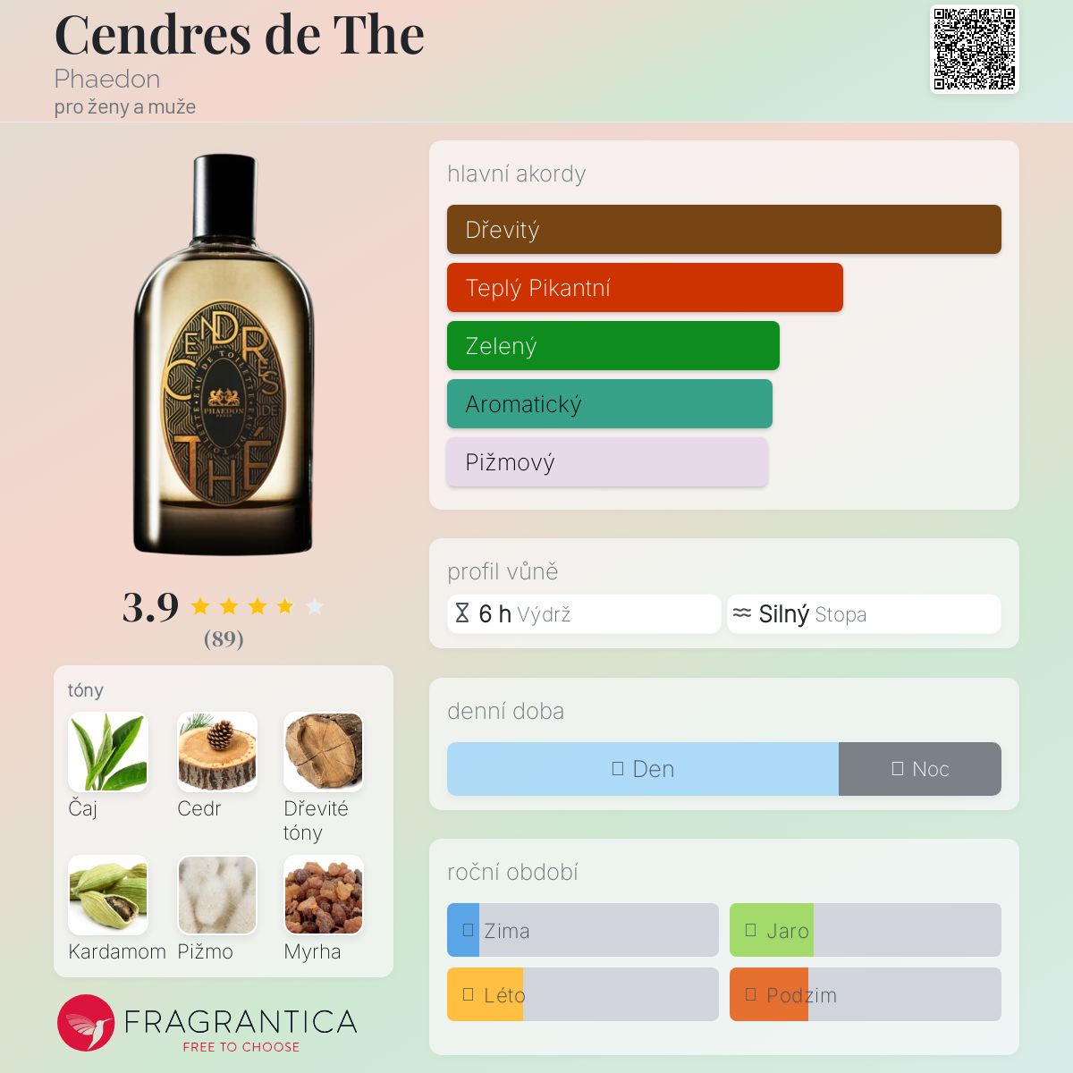 Cendres de The podle Phaedon je Woody Aromatic vůně pro ženy a muže. Cendres de The byl/a uveden/a v roce 2011. "Nosem" za touto vůní je Pierre Guillaume.