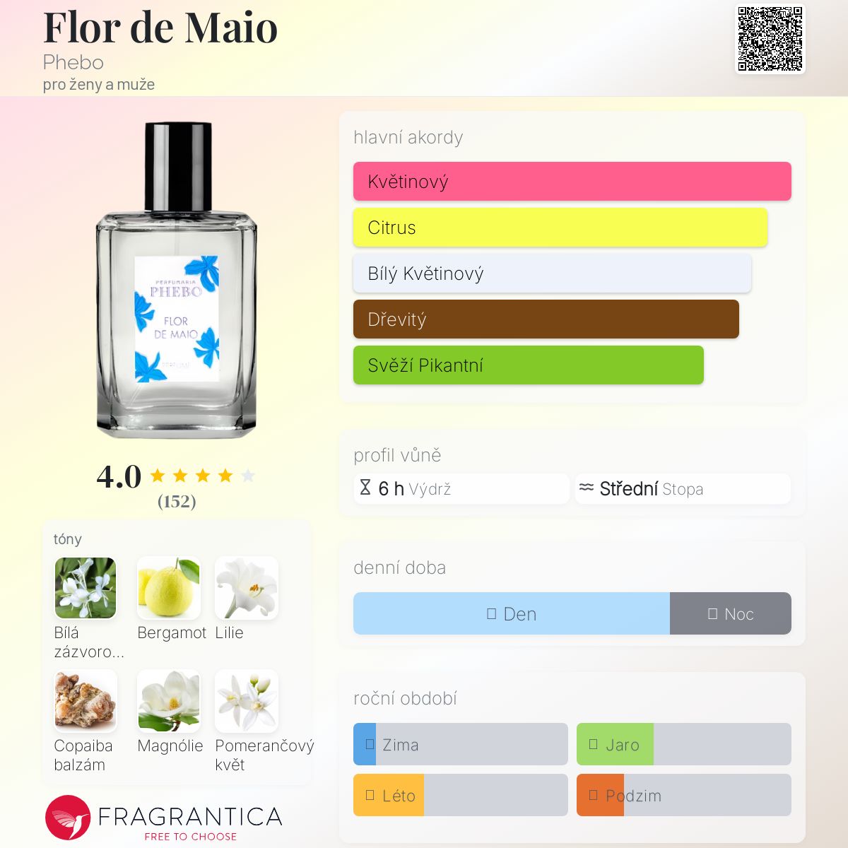 Flor de Maio podle Phebo je Floral vůně pro ženy a muže. Flor de Maio byl/a uveden/a v roce 2021. Vrchní tóny jsou Bergamot, Copaiba balzám a Semena mrkve; střední tóny jsouAsijská lilie, Magnólie a Pomerančový květ ; základní tóny jsou Fazole tonka, Cedr a Jantar (ambra).