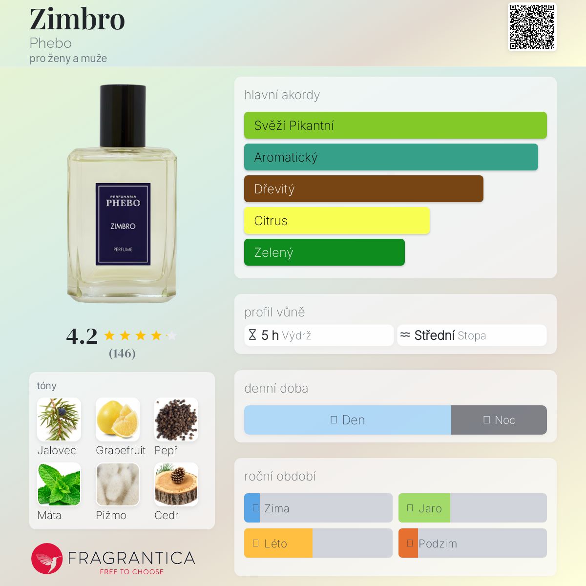 Zimbro podle Phebo je Aromatic vůně pro ženy a muže. Zimbro byl/a uveden/a v roce 2018. Vrchní tóny jsou Jalovec, Grapefruit a Rozmarýn; střední tóny jsouČerný pepř, Máta a Levandule ; základní tóny jsou Pižmo, Koňak a Cedr.