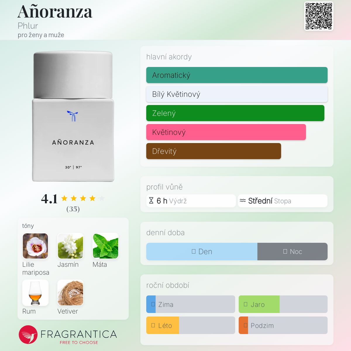 Añoranza podle Phlur je vůně pro ženy a muže. Añoranza byl/a uveden/a v roce 2019. "Nosem" za touto vůní je Gino Percontino.