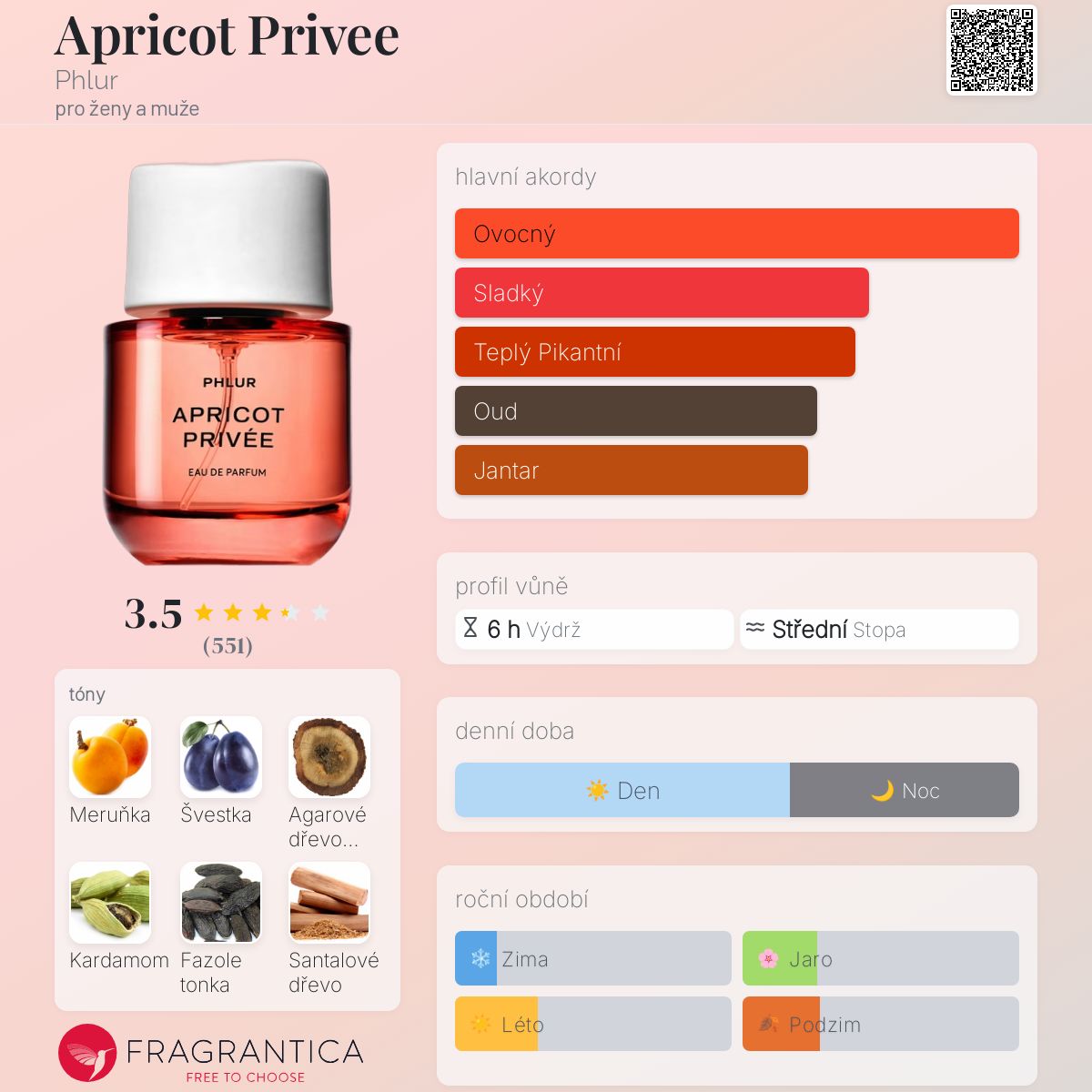 Apricot Privee podle Phlur je vůně pro ženy a muže. Apricot Privee byl/a uveden/a v roce 2022. "Nosem" za touto vůní je Jérôme Epinette. Vrchní tóny jsou Meruňka, Švestka a Kardamom; střední tóny jsouJasmín a Pivoňka ; základní tóny jsou Agarové dřevo (oud), Fazole tonka, Santalové dřevo a Labdanum.