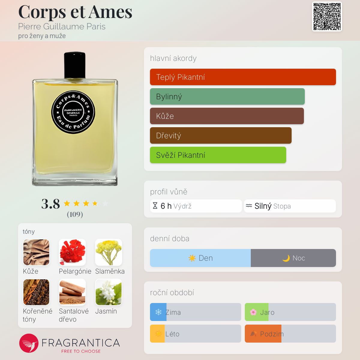 Corps et Ames podle Pierre Guillaume Paris je Chypre Floral vůně pro ženy a muže. Corps et Ames byl/a uveden/a v roce 2006. "Nosem" za touto vůní je Pierre Guillaume.