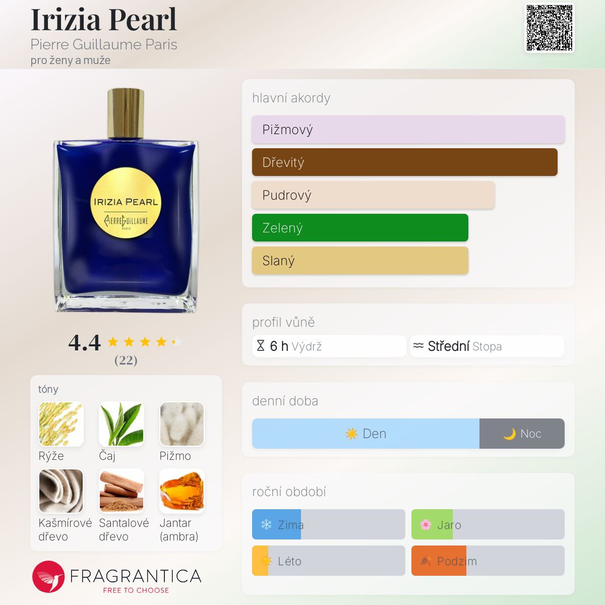 Irizia Pearl podle Pierre Guillaume Paris je vůně pro ženy a muže. Irizia Pearl byl/a uveden/a v roce 2021. "Nosem" za touto vůní je Pierre Guillaume.