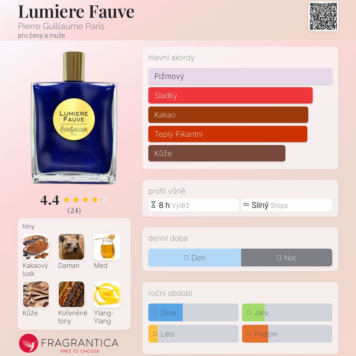 Lumiere Fauve podle Pierre Guillaume Paris je Orientální Spicy vůně pro ženy a muže. Lumiere Fauve byl/a uveden/a v roce 2015. "Nosem" za touto vůní je Pierre Guillaume.