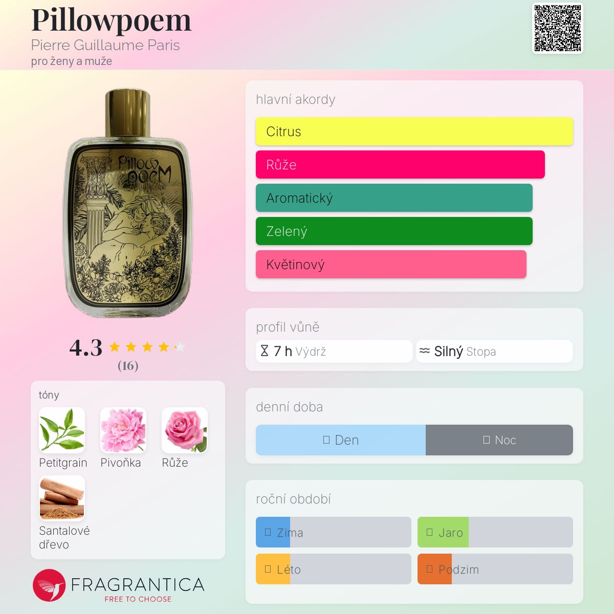 Pillowpoem podle Pierre Guillaume Paris je Floral vůně pro ženy a muže. Toto je nová vůně. Pillowpoem byl/a uveden/a v roce 2022. "Nosem" za touto vůní je Pierre Guillaume.