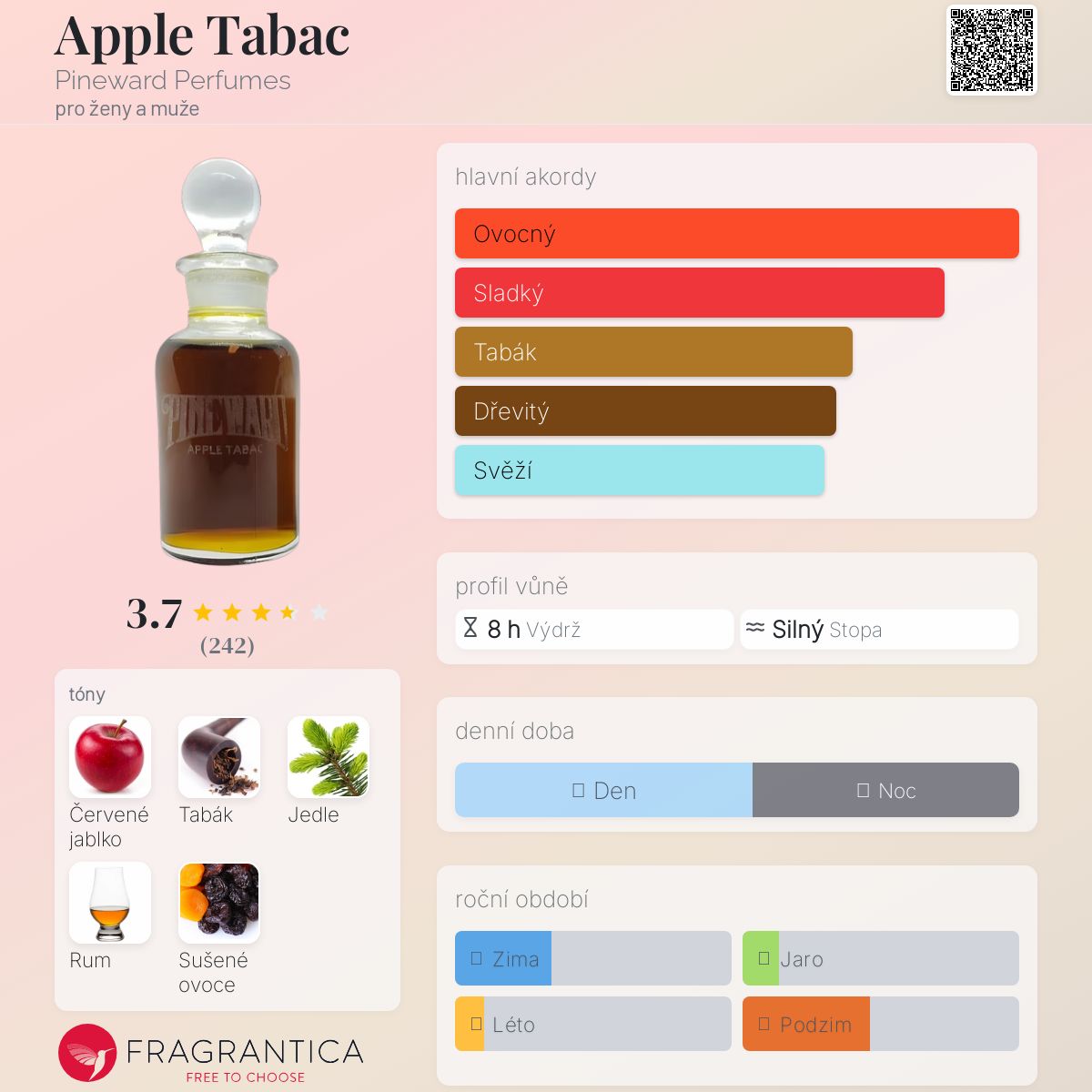 Apple Tabac podle Pineward Perfumes je Aromatic Fruity vůně pro ženy a muže. Apple Tabac byl/a uveden/a v roce 2020. "Nosem" za touto vůní je Nicholas Nilsson.