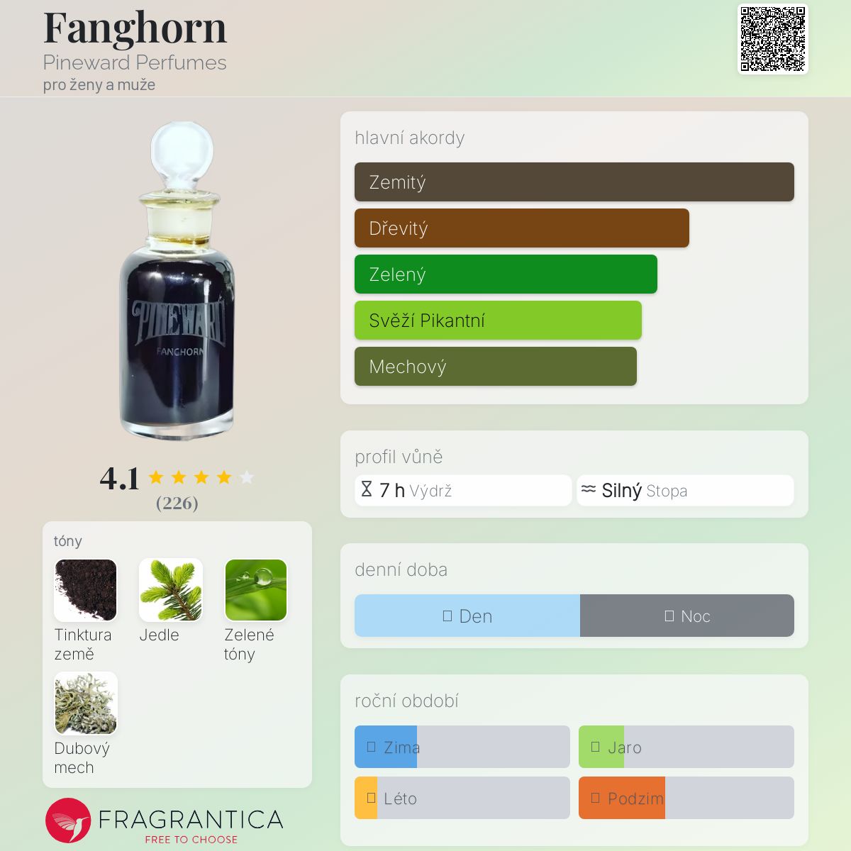 Fanghorn podle Pineward Perfumes je Woody Aromatic vůně pro ženy a muže. Fanghorn byl/a uveden/a v roce 2020. "Nosem" za touto vůní je Nicholas Nilsson.