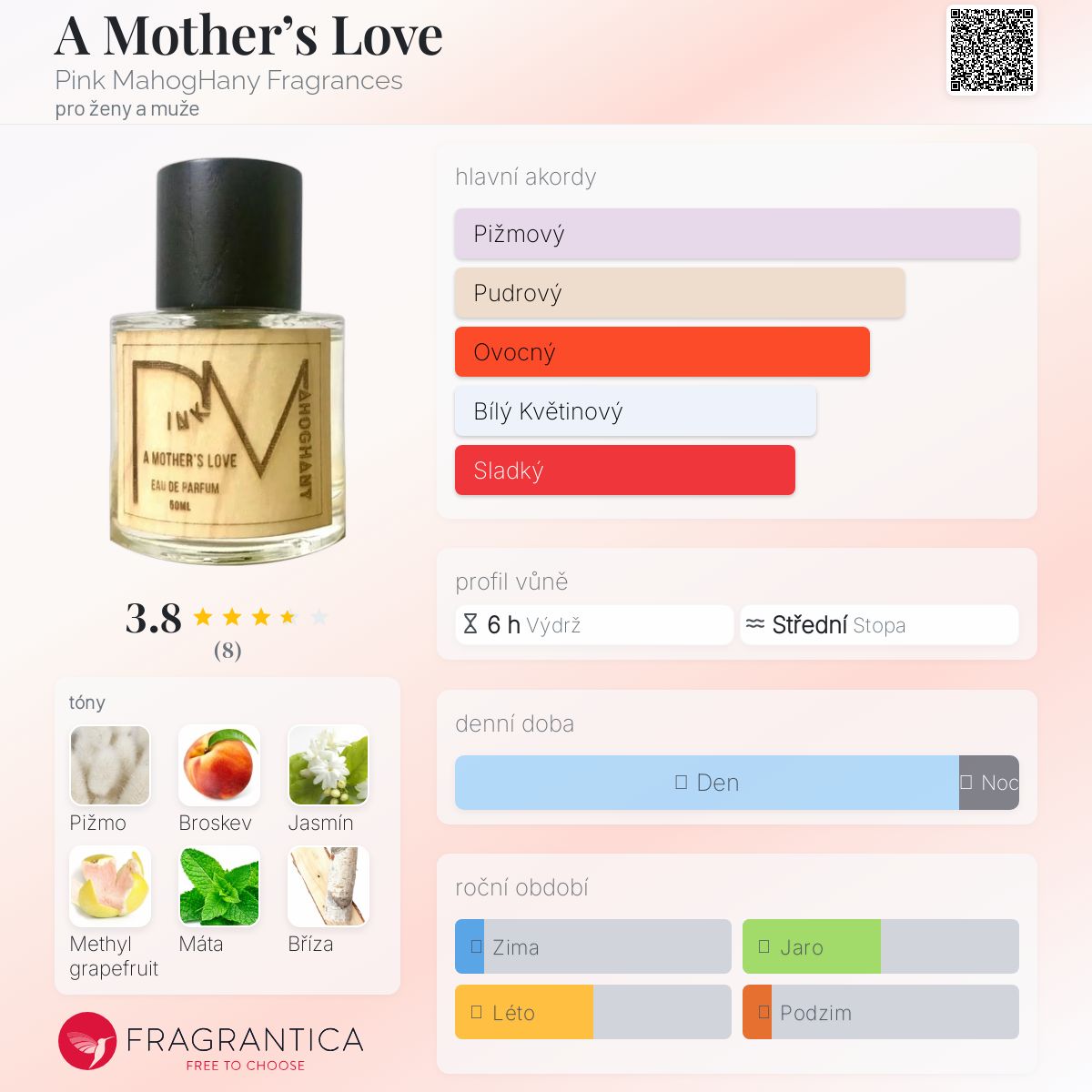 A Mother’s Love podle Pink MahogHany Fragrances je vůně pro ženy a muže. A Mother’s Love byl/a uveden/a v roce 2013. "Nosem" za touto vůní je Chavalia Mwamba.