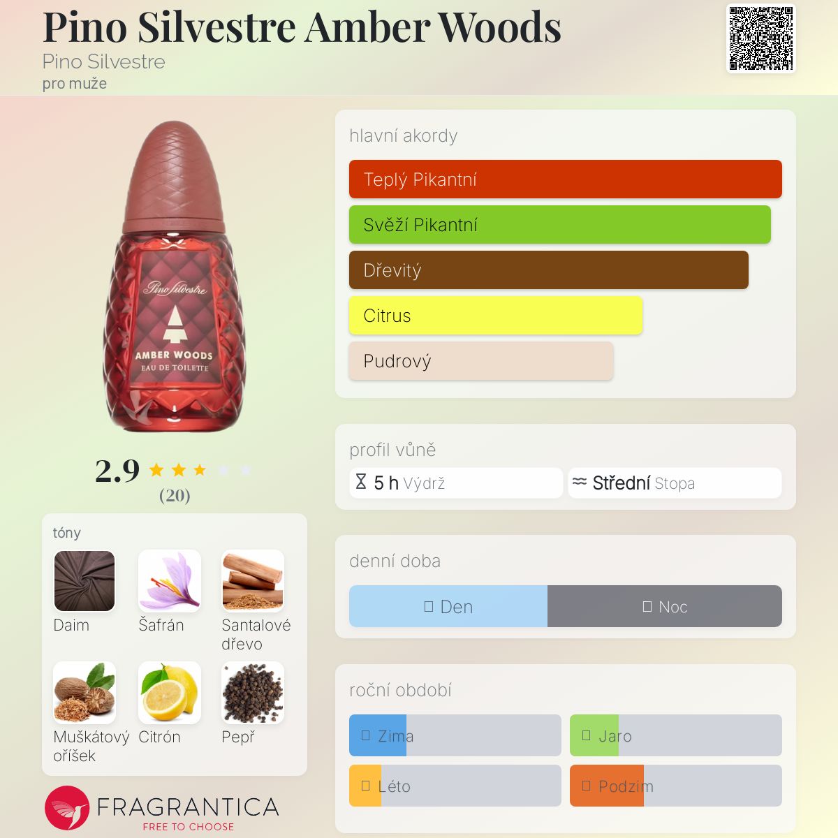 Pino Silvestre Amber Woods podle Pino Silvestre je Orientální Woody vůně pro muže. Pino Silvestre Amber Woods byl/a uveden/a v roce 2023. Vrchní tóny jsou Muškátový oříšek, Citrón a Tymián; střední tóny jsouŠafrán a Černý pepř ; základní tóny jsou Daim, Santalové dřevo, Pačuli a Cypriolový olej.