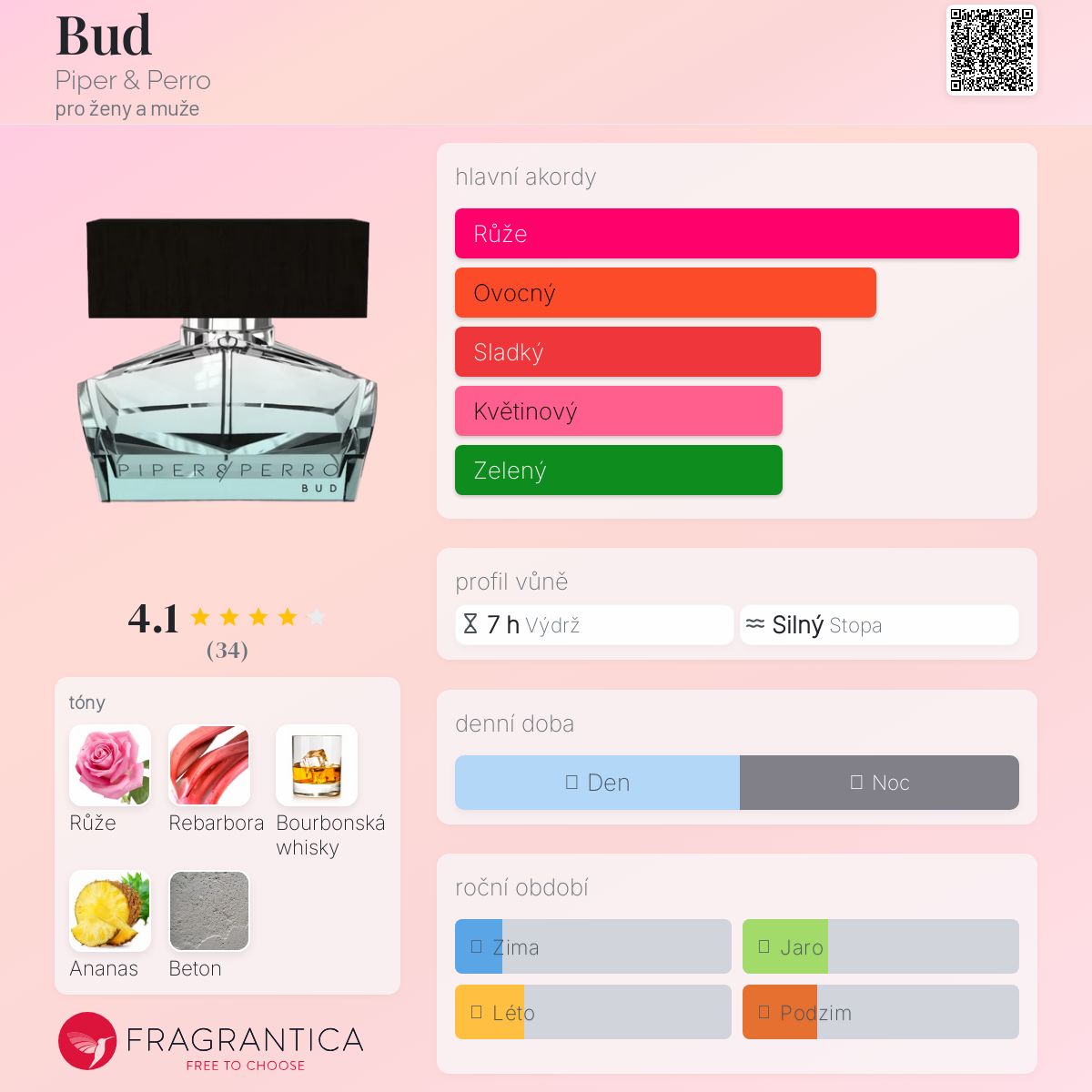 Bud podle Piper & Perro je Floral Fruity vůně pro ženy a muže. Bud byl/a uveden/a v roce 2018. Bud byl/a vytvořen/a Tom Jansen a Amanda Buhse.