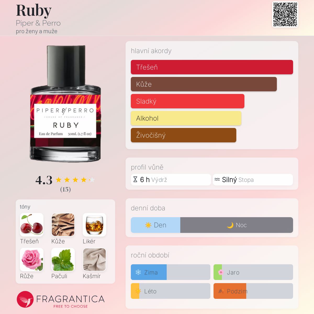 Ruby podle Piper & Perro je Leather vůně pro ženy a muže. Toto je nová vůně. Ruby byl/a uveden/a v roce 2024.