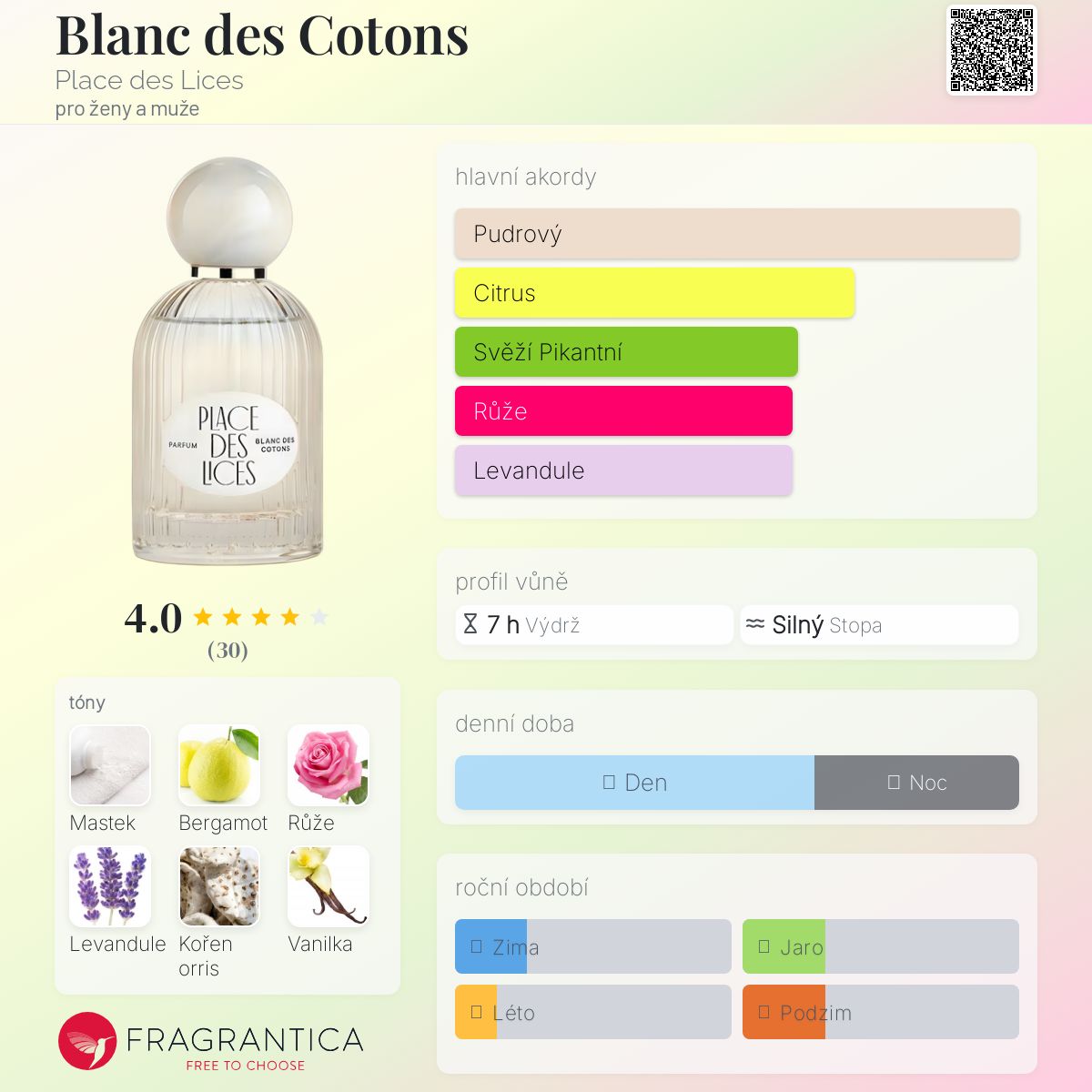 Blanc des Cotons podle Place des Lices je vůně pro ženy a muže. Blanc des Cotons byl/a uveden/a v roce 2021.