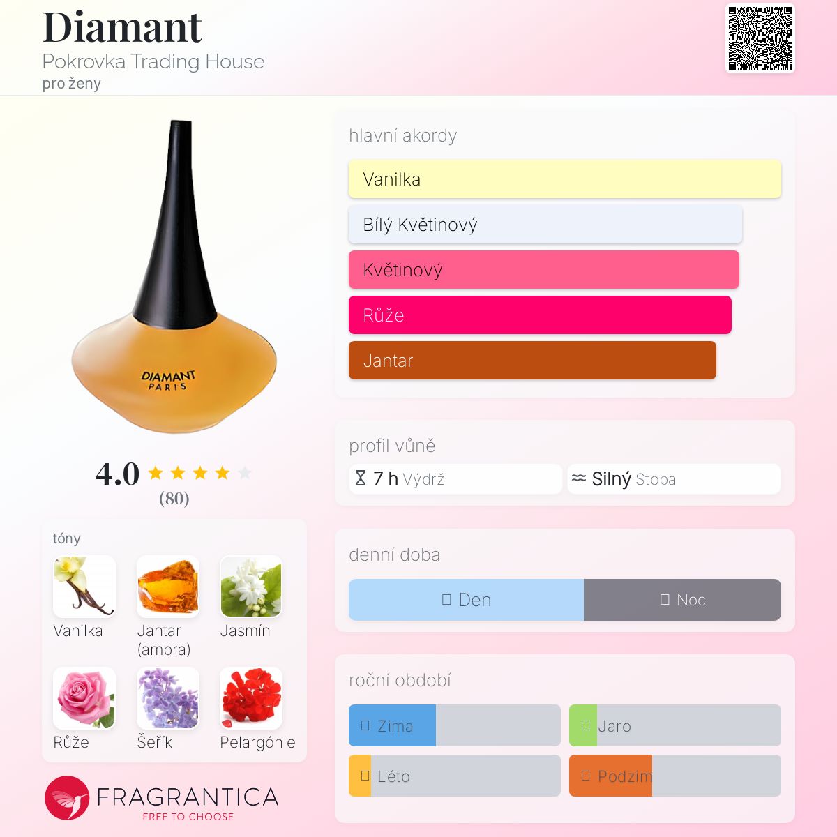 Diamant podle Pokrovka Trading House je Floral vůně pro ženy. Diamant byla spuštěna během 1990. Vrchní tóny jsou Šeřík, Pelargónie a Konvalinka; střední tóny jsouJasmín a Růže ; základní tóny jsou Vanilka, Jantar (ambra), Vetiver a Cedr.