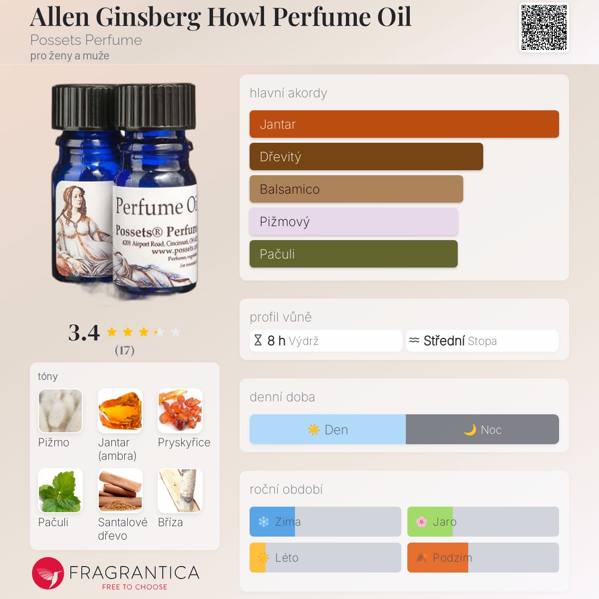 Allen Ginsberg Howl Perfume Oil podle Possets Perfume je Orientální vůně pro ženy a muže. Allen Ginsberg Howl Perfume Oil byl/a uveden/a v roce 2013. "Nosem" za touto vůní je Fabienne Christenson.