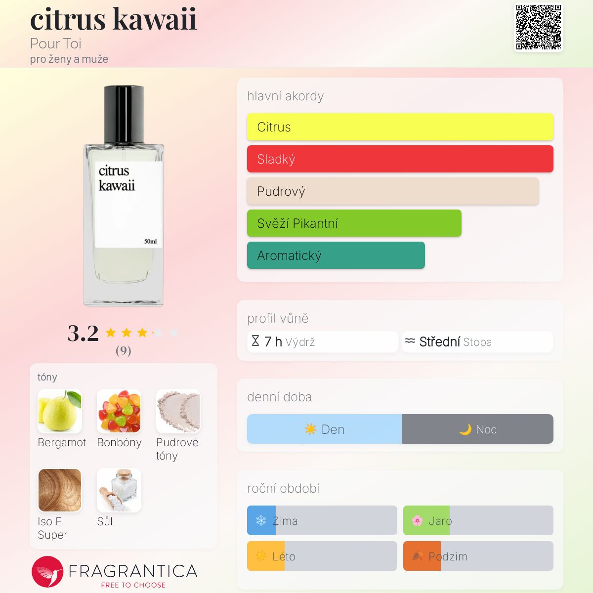 citrus kawaii podle Pour Toi je Citrus Gourmand vůně pro ženy a muže. Toto je nová vůně. citrus kawaii byl/a uveden/a v roce 2024. "Nosem" za touto vůní je Erik Constantin.