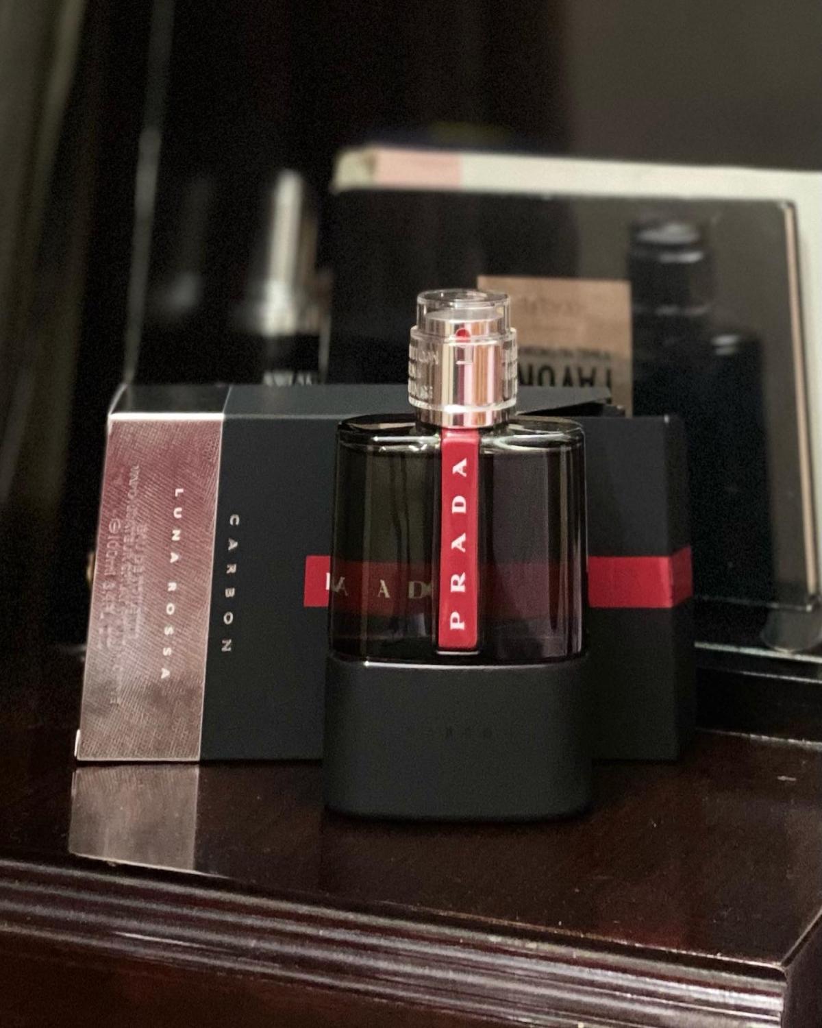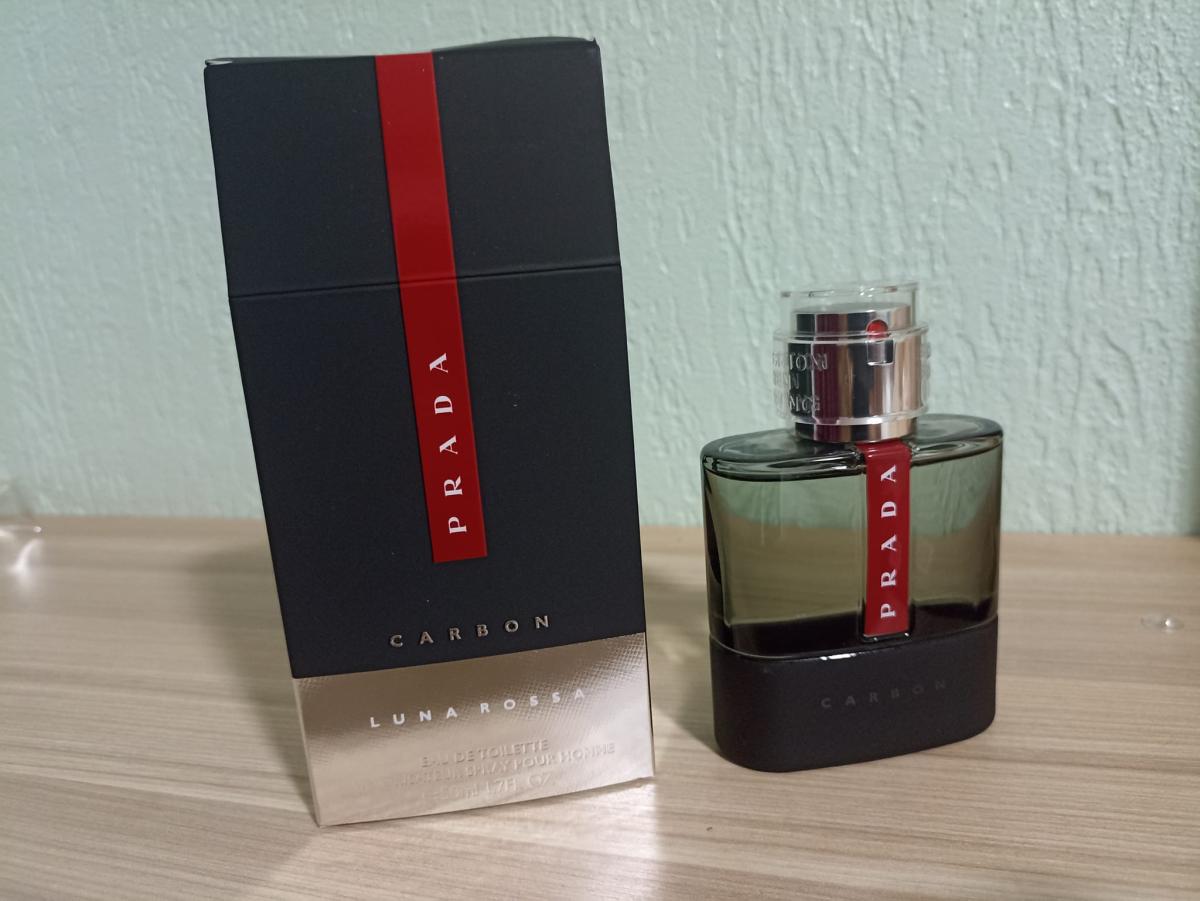 Pánská toaletní voda Prada Luna Rossa Carbon se otevírá mírnou projekcí bergamotu a pepře. Úvod je jasný, ostrý, intenzivní, kyselý, jiskřivý a velmi příjemný, vůně působí sportovně, osvěžujícím a velmi přitažlivým dojmem. Počáteční projekce je mírná; pepř pomáhá projekci zlepšit. Chvíli po úvodu se objevují střední tóny, které jako by spíše podporovaly úvodní tóny, než aby si vydobyly prostor. Levandule dodává slabý květinový nádech, který trochu zjemňuje citrusové hrany; půdní tinktura dodává zemitý, téměř zelený tón, který umocňuje bergamot; kovový tón působí jako krabička s kovovým nářadím nebo krabička s kovovým stříbrem, zvláštní a nápadný tón. Uhlí je cítit právě jako, uhlí, lehce kouřový, spálenému dřevu podobný tón, který se dobře mísí s pepřem, jenž se nachází v úvodu. Vodní tóny nejsou výrazné. Nakonec Prada Luna Rossa Carbon dosáhne svého vyschnutí a objeví se ambroxan, který vytváří pižmově citronovou a lehce pudrovou nótu, ale velmi vystupující nótu, zvyšuje projekci. Pačuli uvedené jako základní nóta je slabým zeleným svěžím dotekem. Vůně má určitou znatelnou změnu od začátku do vyschnutí, začátek je citrusový, ostrý, kyselý, ale postupem času citrusový tón ustupuje o krok dolů a nechává ambroxan převzít vedení vůně s pižmově citronovým tónem, který jako by vytvářel souvislou linii od začátku do vyschnutí bergamotu. Jakmile toaletní voda Prada Luna Rossa Carbon Men EDT dosáhne svého úplného zaschnutí, lze ji shrnout jako středně výraznou projekci, pižmově citronový ambroxan a pepřovou vůni s několika kovovými, zemitými, pudrovými a velmi jemnými květinovými tóny. Vůně působí ležérně, elegantně, energicky, exoticky, voňavě, svěže, lehce zeleně, lákavě, mužně, moderně, příjemně namíchaně, hravě, osvěživě, ostře, lehce kouřově, kysele, pikantně, sportovně, univerzálně, pikantně a velmi příjemně.