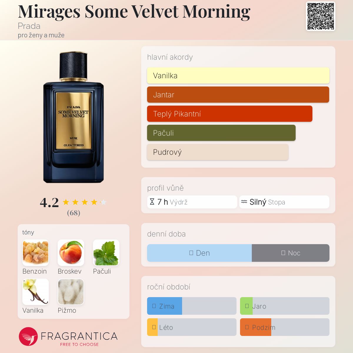 Mirages Some Velvet Morning podle Prada je Orientální vůně pro ženy a muže. Mirages Some Velvet Morning byl/a uveden/a v roce 2018.