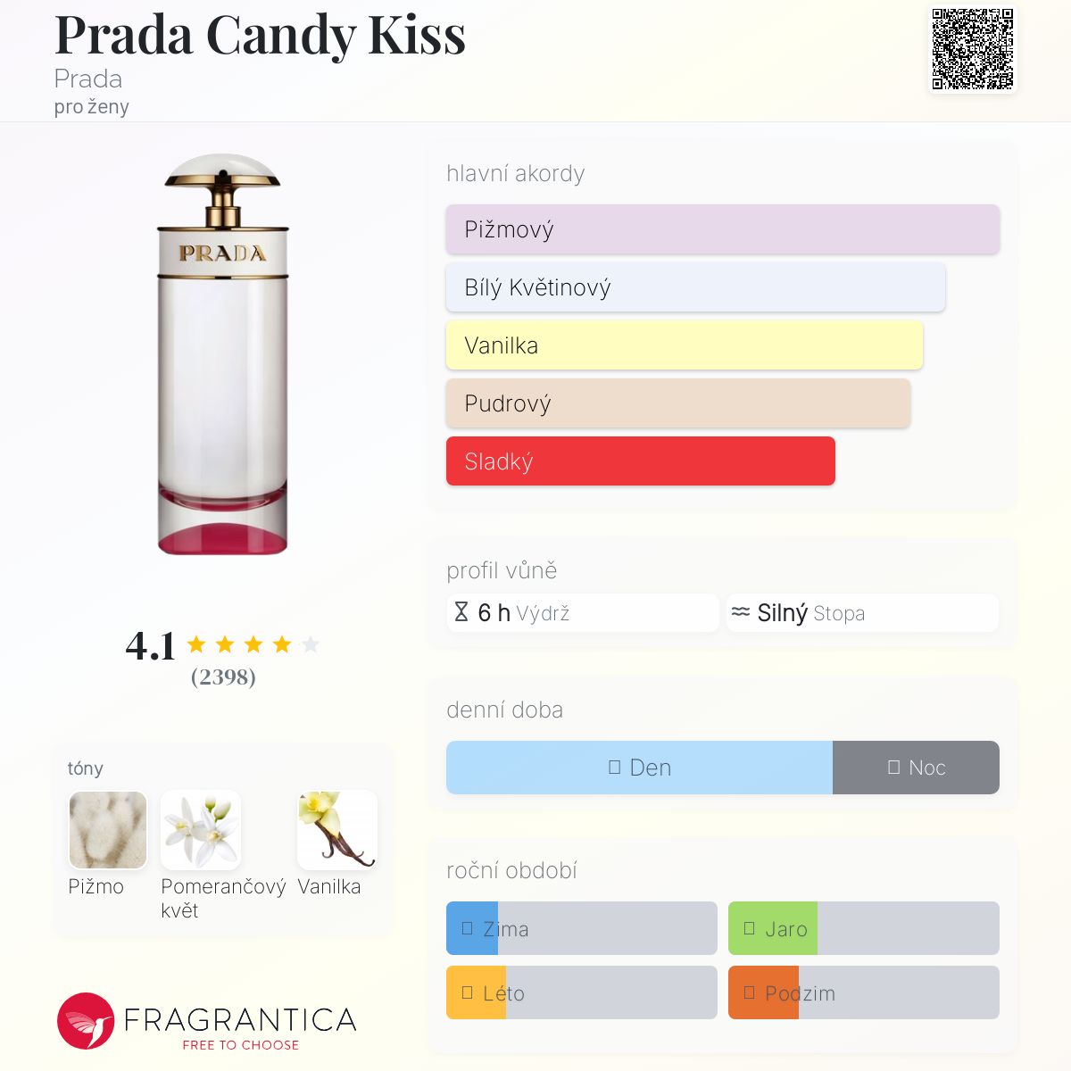 To nejlepší z rodiny Prada Candy. Sladké, ale ne mazlavé. Velmi mladistvá a hravá, ale také nesmírně sexy (nutno používat s rozvahou, protože z ní muži doslova ztrácejí hlavu a ocitají se v ohromení této stopy). Nevím, jestli je to květem pomerančovníku, který uvádí mužské pohlaví do extáze, nebo gurmánskými parfémy obecně, faktem je, že Prada Candy kiss je zárukou dobytí :P tolik komplimentů a také příliš mnoho záletů!