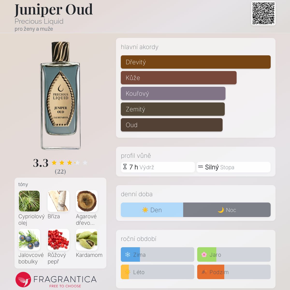 Juniper Oud podle Precious Liquid je Aromatic Spicy vůně pro ženy a muže. Juniper Oud byl/a uveden/a v roce 2023. "Nosem" za touto vůní je Richard Herpin.