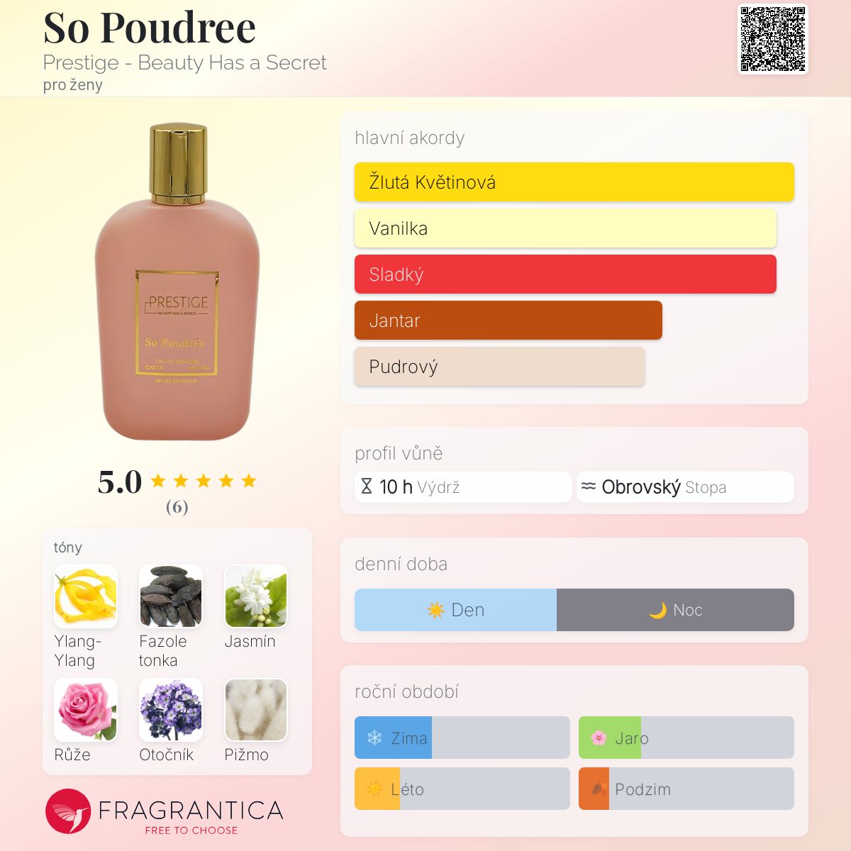 So Poudree podle Prestige - Beauty Has a Secret je vůně pro ženy. So Poudree byl/a uveden/a v roce 2021. "Nosem" za touto vůní je Bhupinder Singh Badh Sunny.