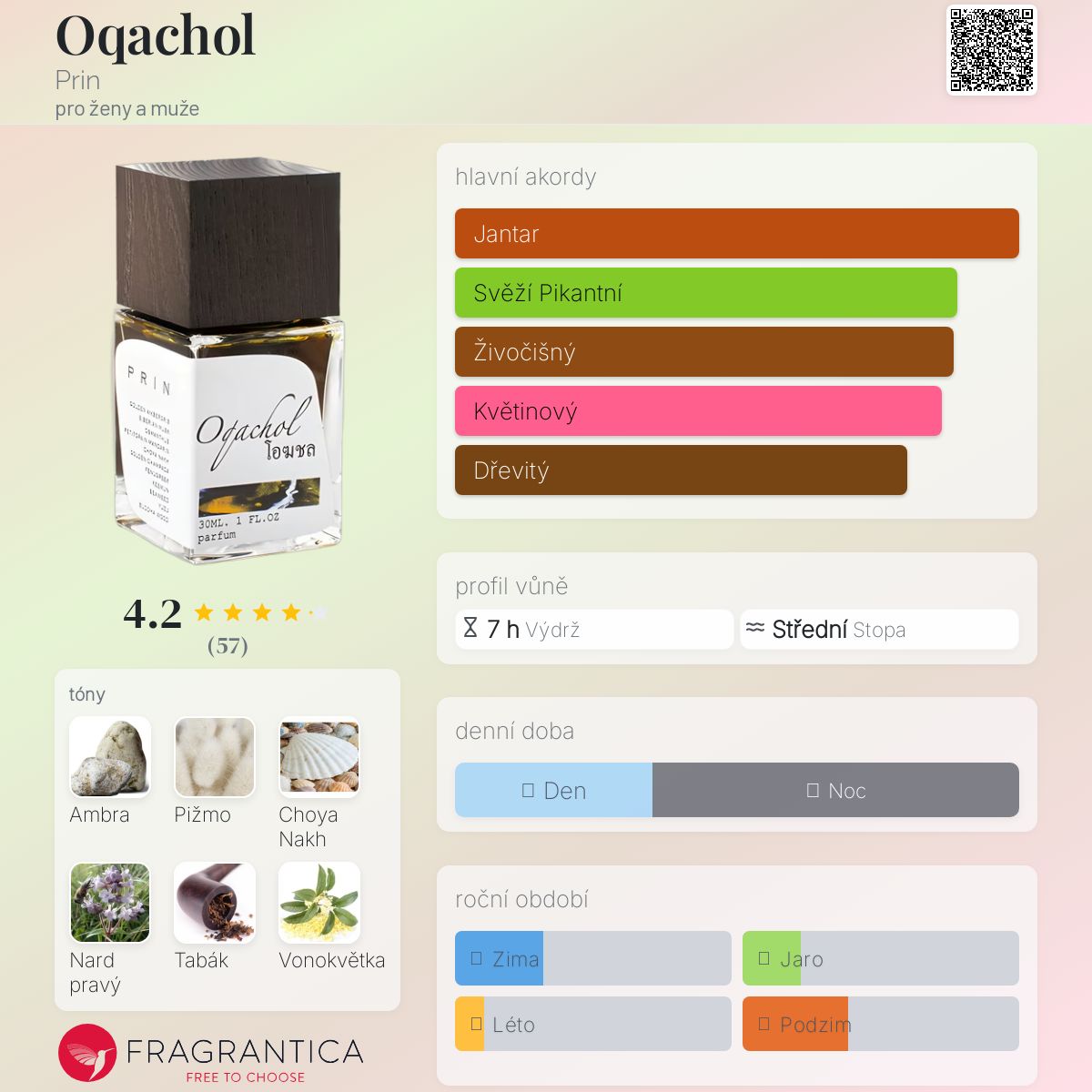 Oqachol podle Prin je vůně pro ženy a muže. Oqachol byl/a uveden/a v roce 2022. "Nosem" za touto vůní je Prin Lomros.