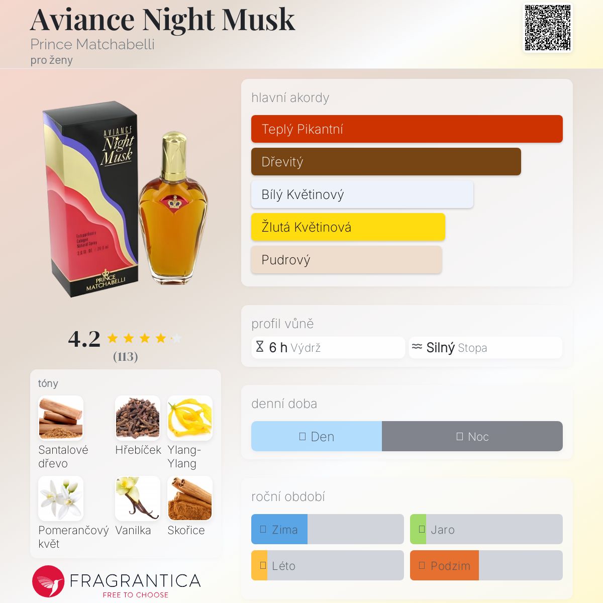 Aviance Night Musk podle Prince Matchabelli je Floral vůně pro ženy. Aviance Night Musk byl/a uveden/a v roce 1983.