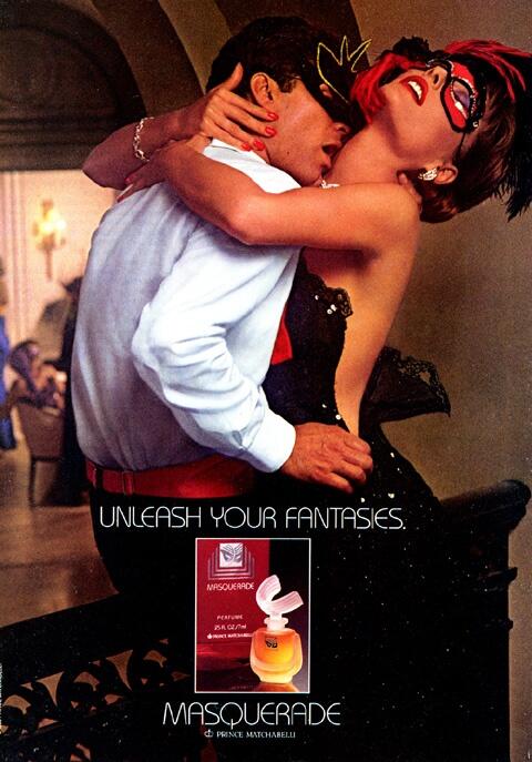 Masquerade Parfum podle Prince Matchabelli je Floral Aldehyde vůně pro ženy. Masquerade Parfum byl/a uveden/a v roce 1970. Vrchní tóny jsou Brazilské růžové dřevo, Zelené tóny, Broskev, Aldehydy, Bergamot a Citrón; střední tóny jsouJasmín, Kosatec, Ylang-Ylang, Karafiát, Růže, Santalové dřevo a Vetiver ; základní tóny jsou Pižmo, Vanilka, Ambra, Benzoin, Opoponax, Mech a Cibetka.