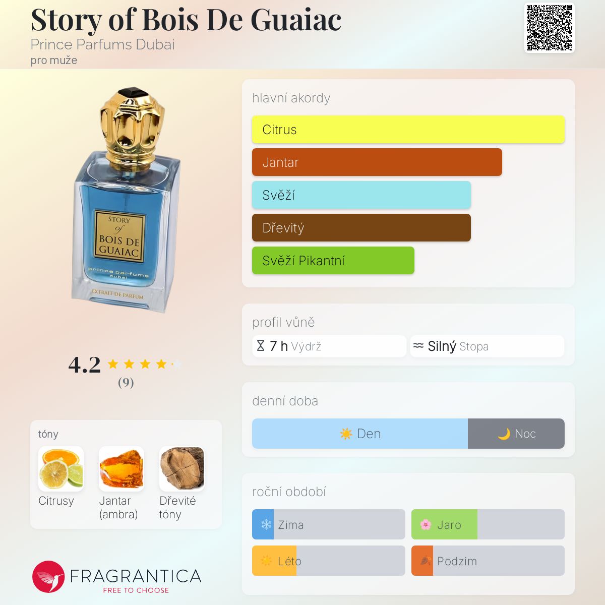 Story of Bois De Guaiac podle Prince Parfums Dubai je vůně pro muže. Story of Bois De Guaiac byl/a uveden/a v roce 2023.