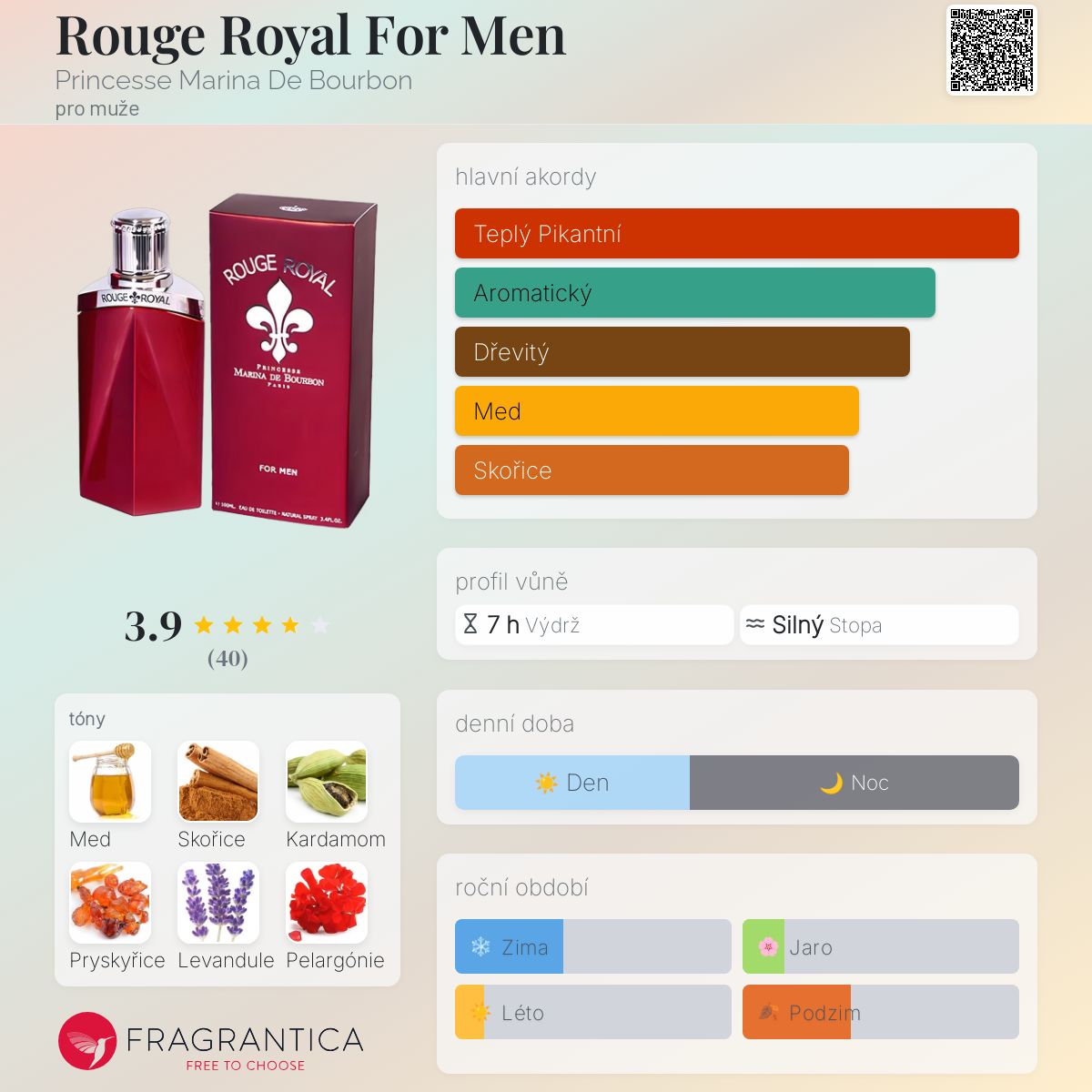Rouge Royal For Men podle Princesse Marina De Bourbon je vůně pro muže. Rouge Royal For Men byl/a uveden/a v roce 2006.