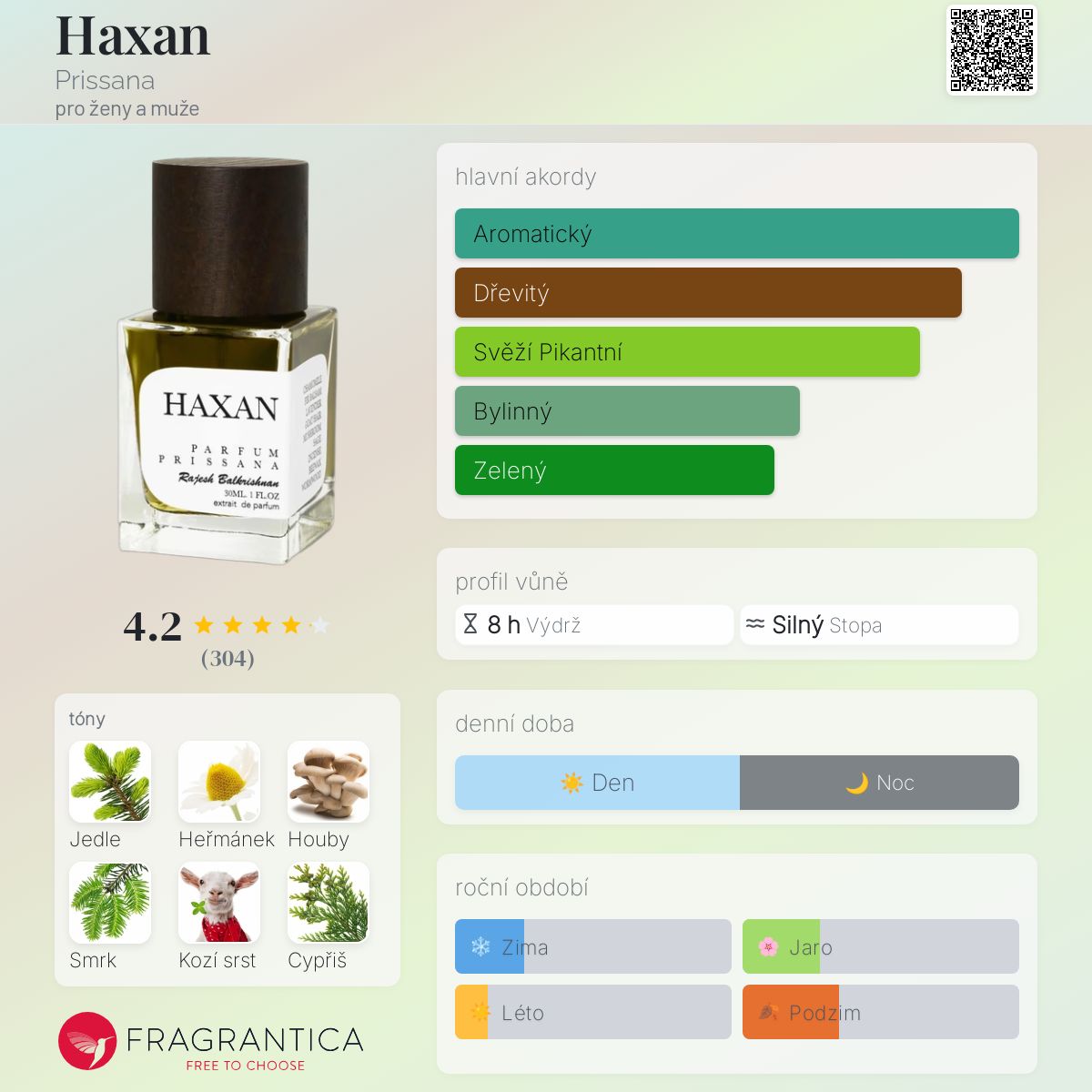 Haxan podle Prissana je vůně pro ženy a muže. Haxan byl/a uveden/a v roce 2018. "Nosem" za touto vůní je Prin Lomros.