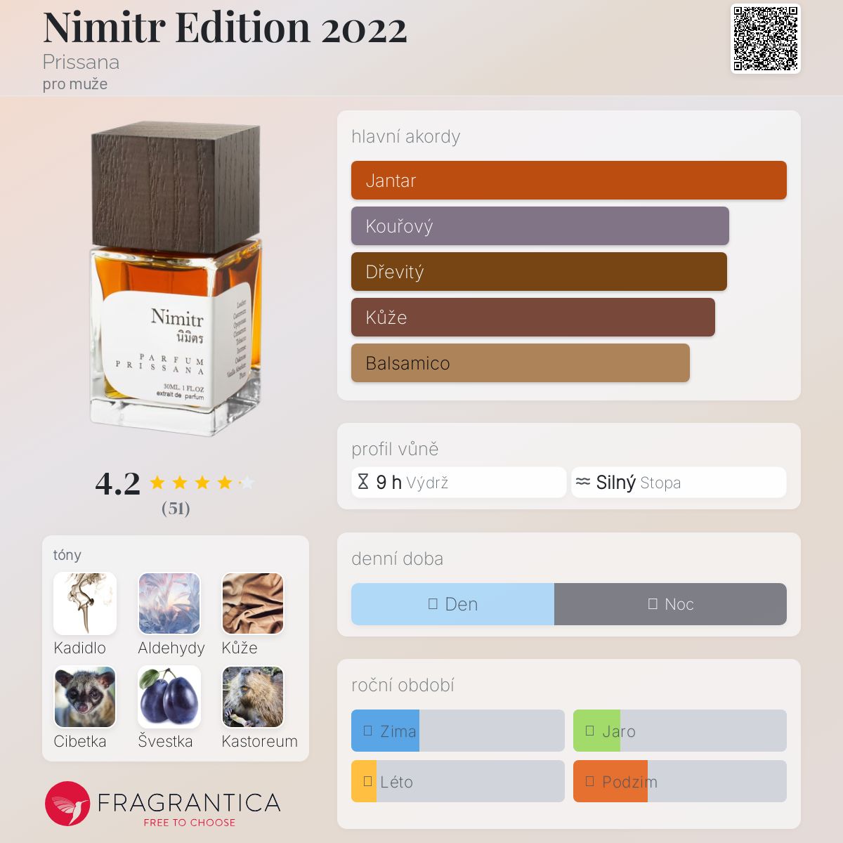 Nimitr Edition 2022 podle Prissana je vůně pro muže. Nimitr Edition 2022 byl/a uveden/a v roce 2022. "Nosem" za touto vůní je Prin Lomros.