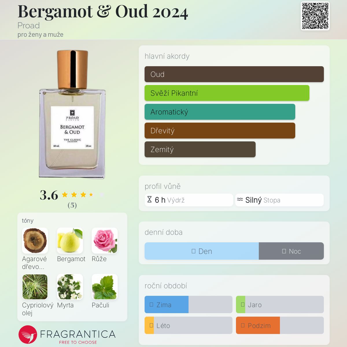 Bergamot & Oud 2024 podle Proad je Orientální Floral vůně pro ženy a muže. Toto je nová vůně. Bergamot & Oud 2024 byl/a uveden/a v roce 2024. "Nosem" za touto vůní je Dominique Ropion. Vrchní tón je Bergamot ; střední tóny jsouTurecká růže, Cypriolový olej a Myrta ; základní tóny jsou Agarové dřevo (oud), Pačuli, Jantar (ambra) a Cade olej.