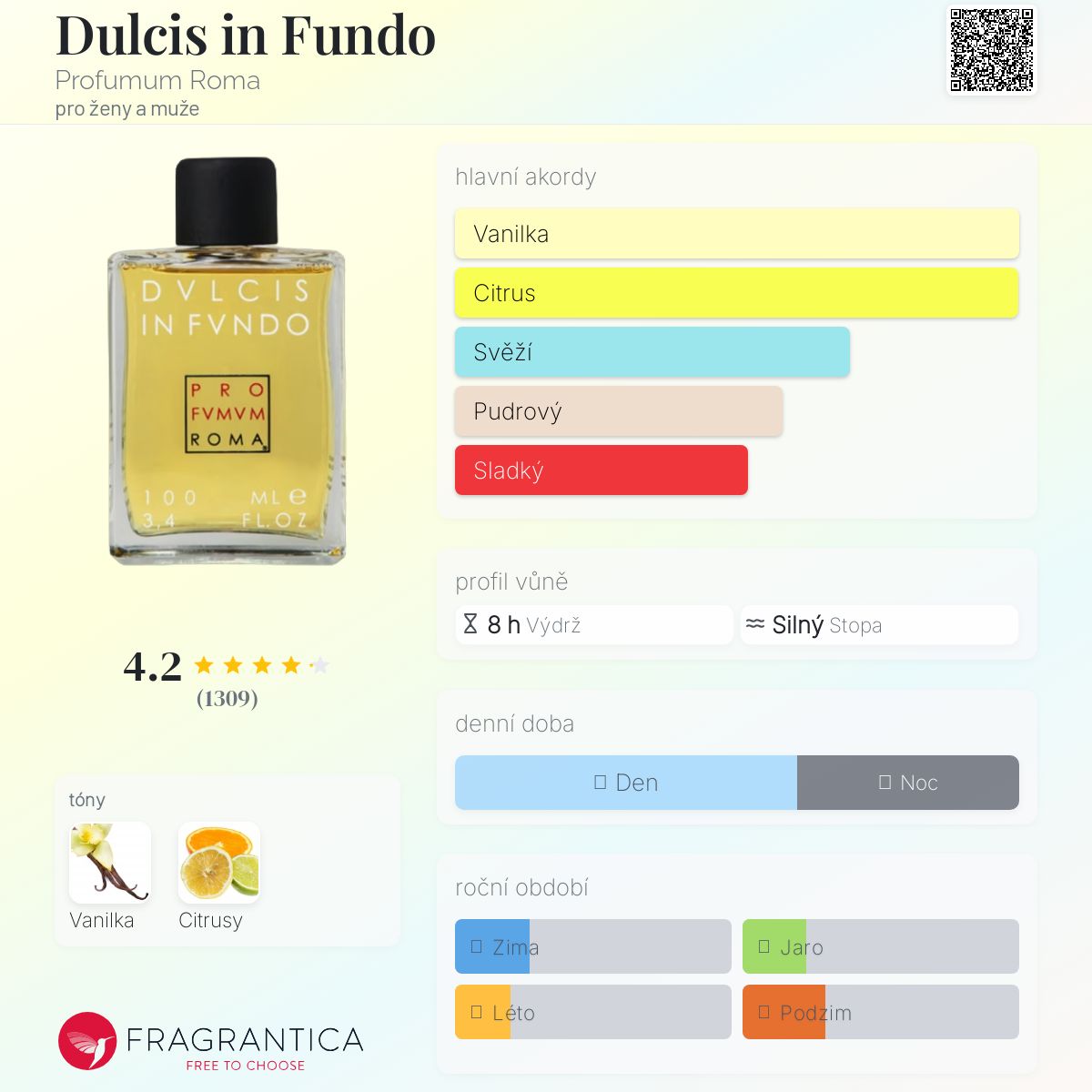 Dulcis in Fundo podle Profumum Roma je vůně pro ženy a muže. Dulcis in Fundo byl/a uveden/a v roce 2006.