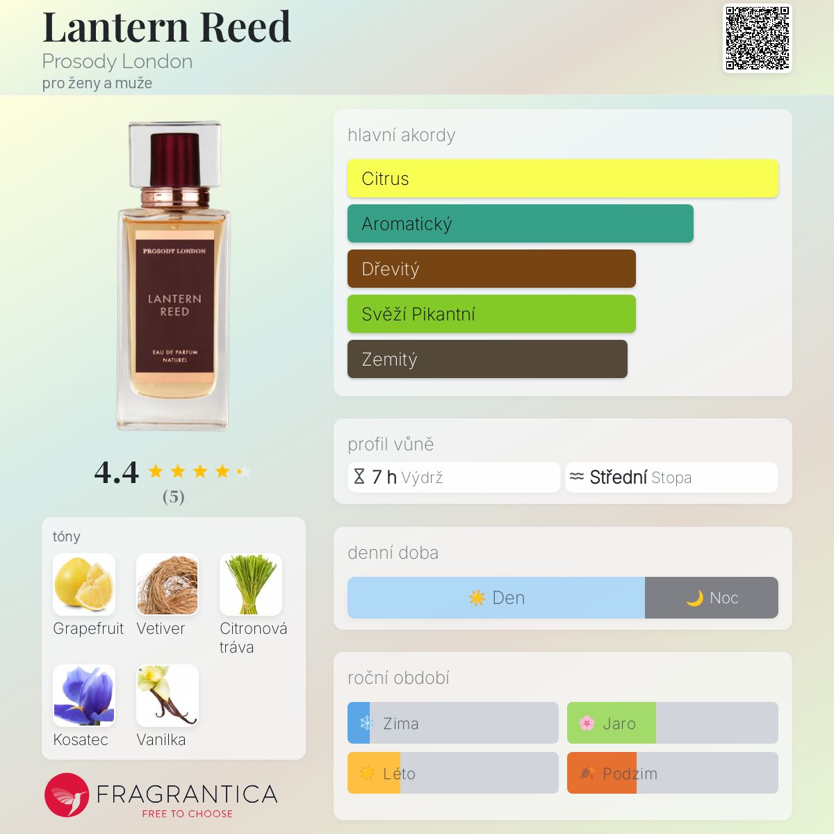 Lantern Reed podle Prosody London je Floral vůně pro ženy a muže. Lantern Reed byl/a uveden/a v roce 2019. "Nosem" za touto vůní je Kershen Teo.