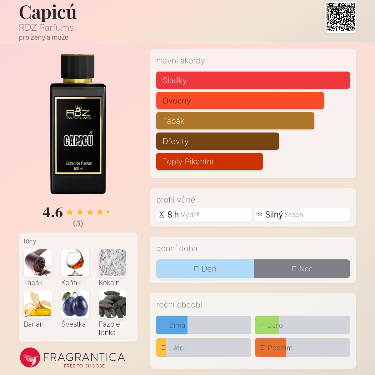 Capicú podle RDZ Parfums je vůně pro ženy a muže. Toto je nová vůně. Capicú byl/a uveden/a v roce 2025. "Nosem" za touto vůní je Daniel Josier. Vrchní tóny jsou Kokain, Banán, Švestka a Vlašský ořech; střední tóny jsouTabák, Koňak a Fazole tonka ; základní tóny jsou Bourbonská vanilka, Dřevité tóny, Labdanum a Vetiver.