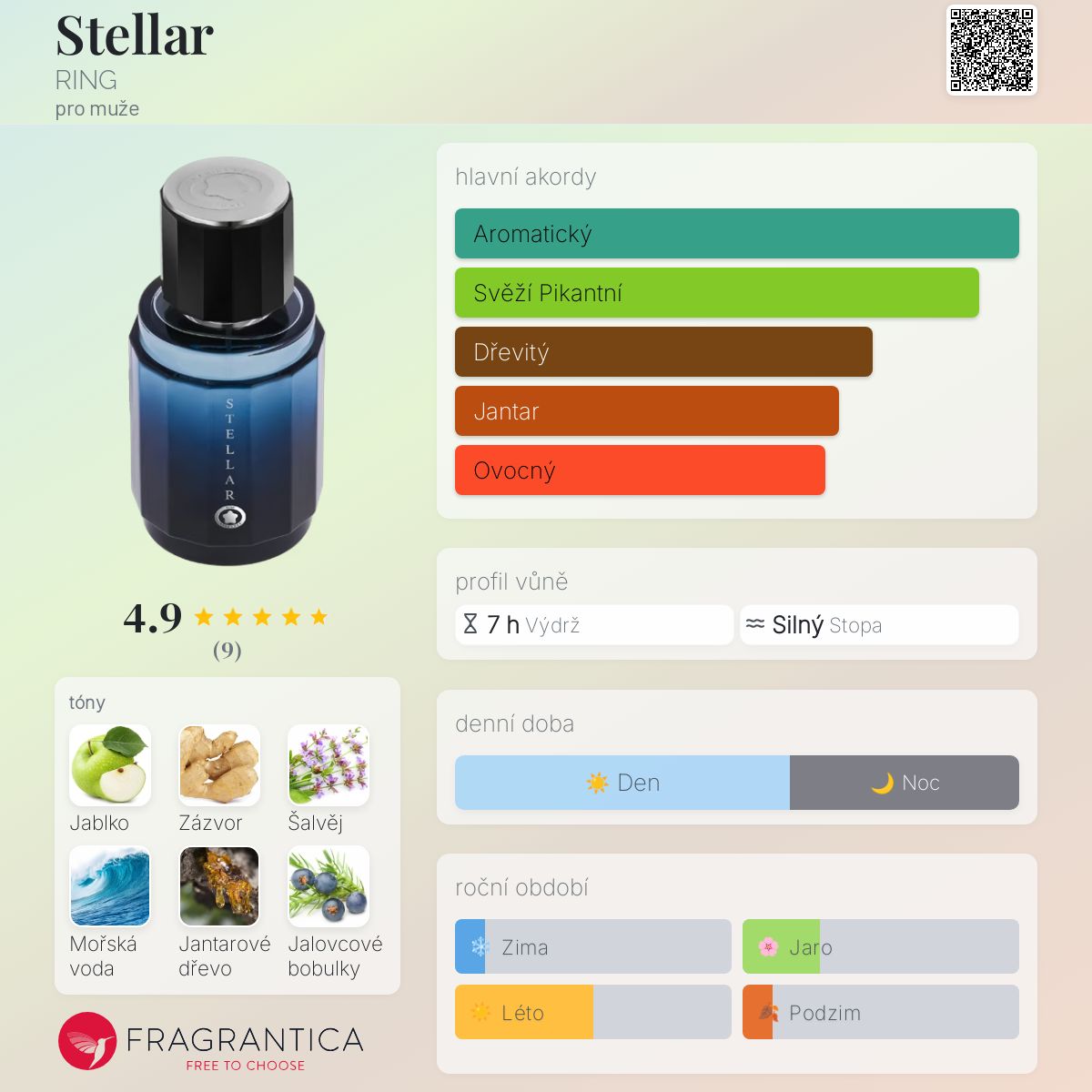 Stellar podle RING je Woody Aromatic vůně pro muže. Toto je nová vůně. Stellar byl/a uveden/a v roce 2025. "Nosem" za touto vůní je Dominique Ropion. Vrchní tóny jsou Zelené jablko, Zázvor a Jalovcové bobulky; střední tóny jsouŠalvěj, Mořské tóny a Pelargónie ; základní tóny jsou Jantarové dřevo, Pačuli a Olibanum.